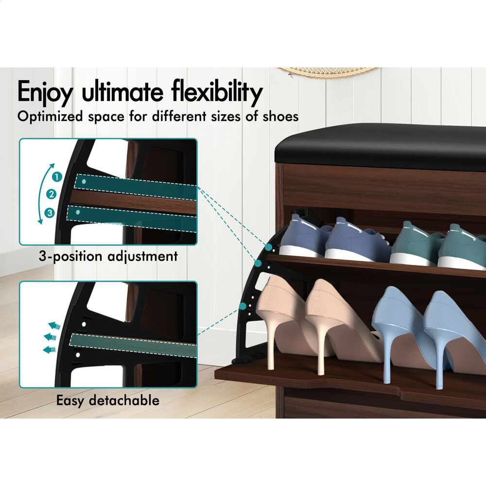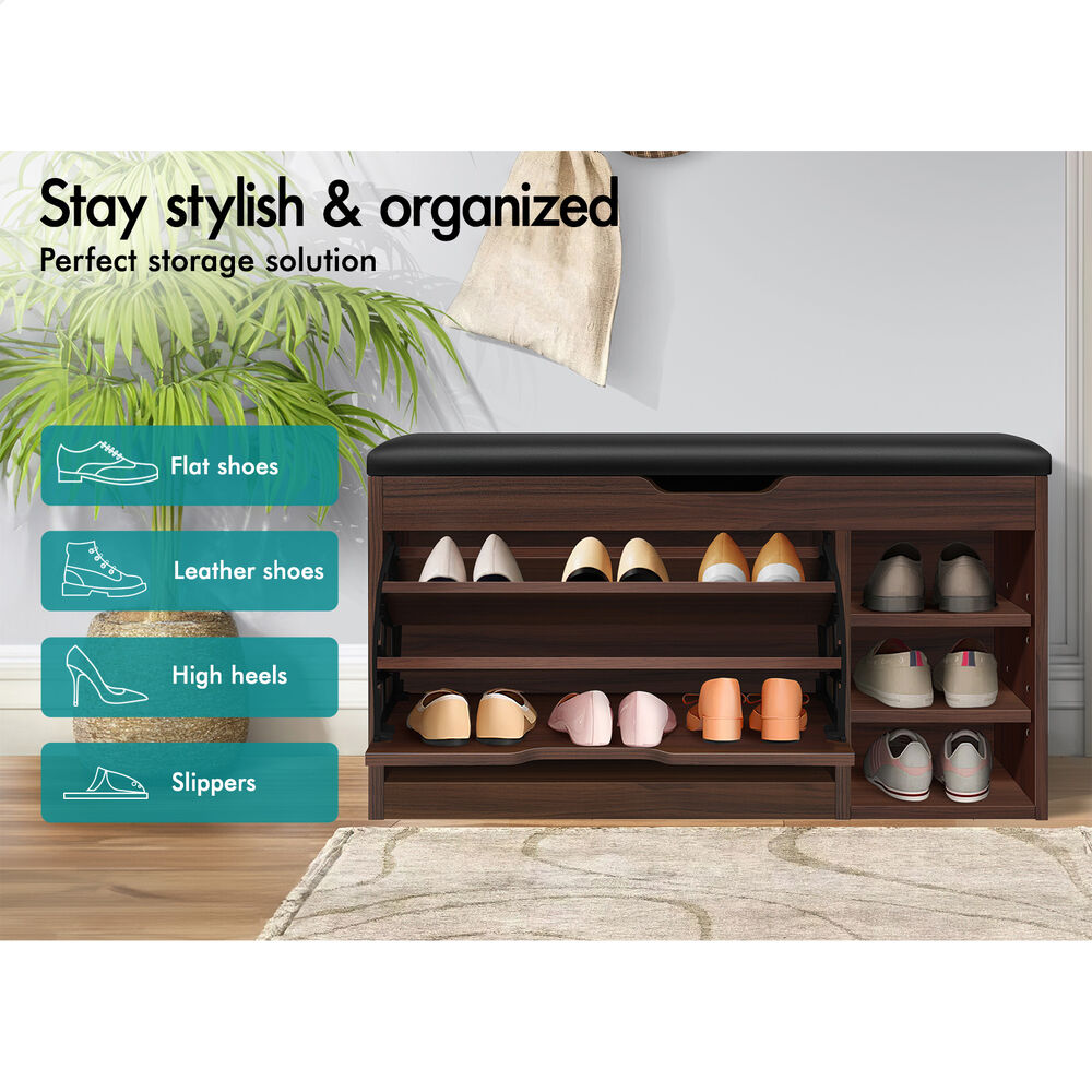 Flats and sneakers in four different rooms? Shoes are placed in clutters? Not convenient while putting on or taking off shoes? It's time to keep your shoes organized with an ALFORDSON® shoe cabinet bench. Featuring a clean-lined silhouette design, this shoe storage bench is easy to coordinate with any style of decor.