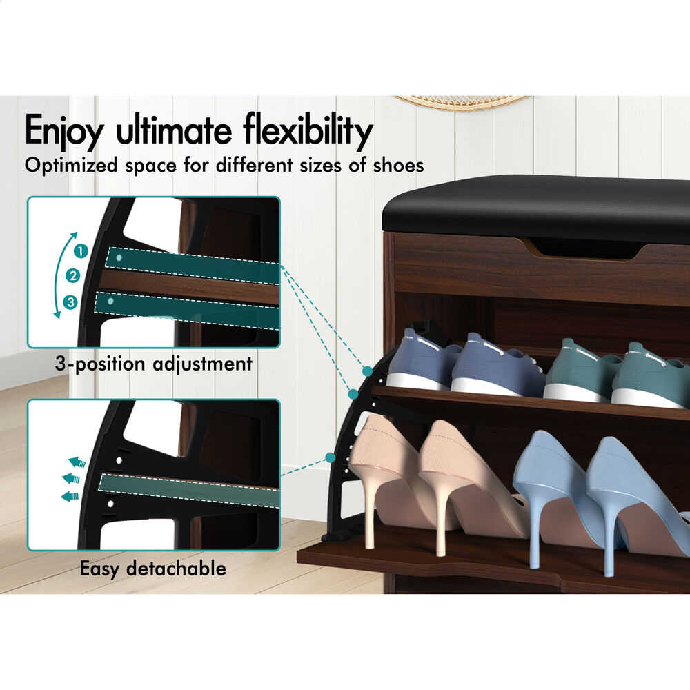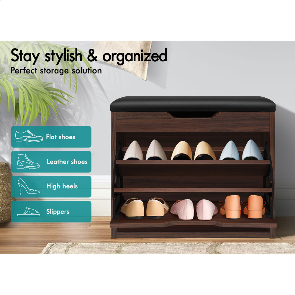 Flats and sneakers in four different rooms? Shoes are placed in clutters? Not convenient while putting on or taking off shoes? It's time to keep your shoes organized with an ALFORDSON® shoe cabinet bench. Featuring a clean-lined silhouette design, this shoe storage bench is easy to coordinate with any style of decor.
