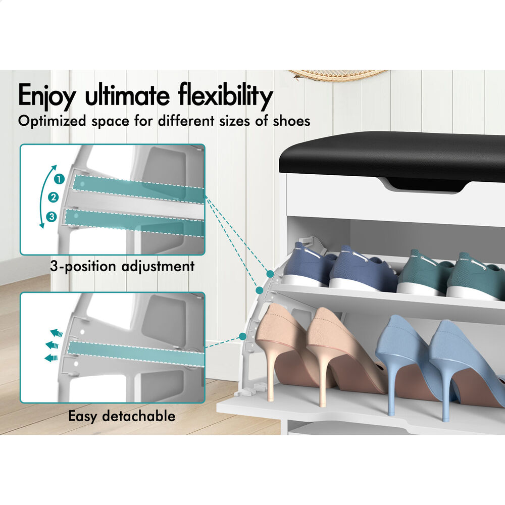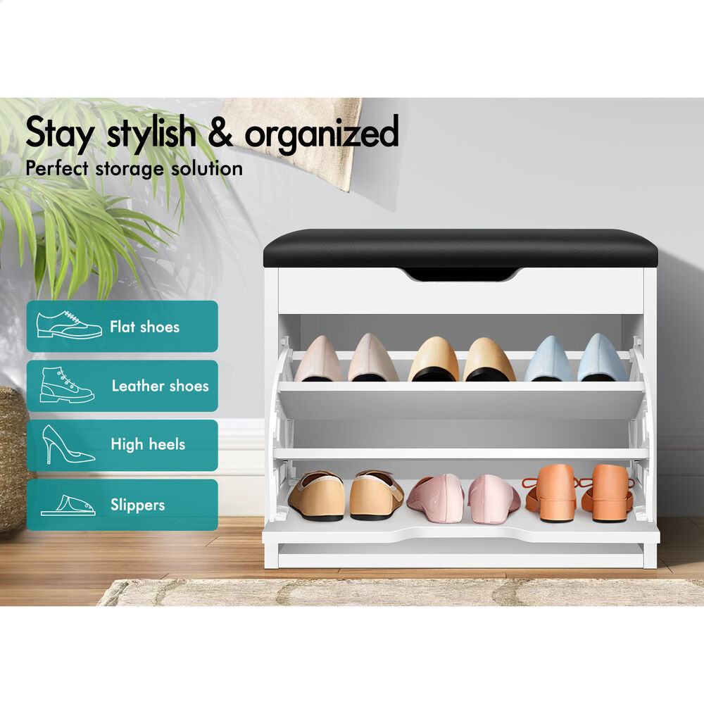 Flats and sneakers in four different rooms? Shoes are placed in clutters? Not convenient while putting on or taking off shoes? It's time to keep your shoes organized with an ALFORDSON® shoe cabinet bench. Featuring a clean-lined silhouette design, this shoe storage bench is easy to coordinate with any style of decor.