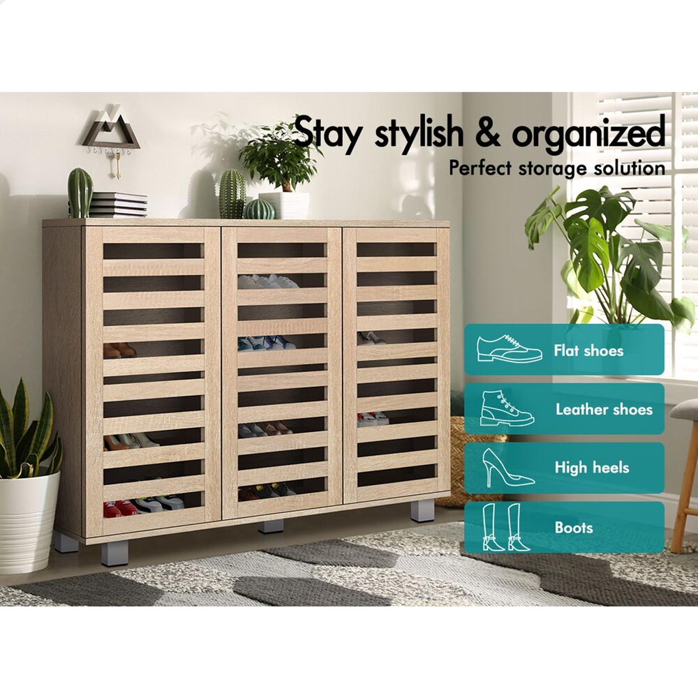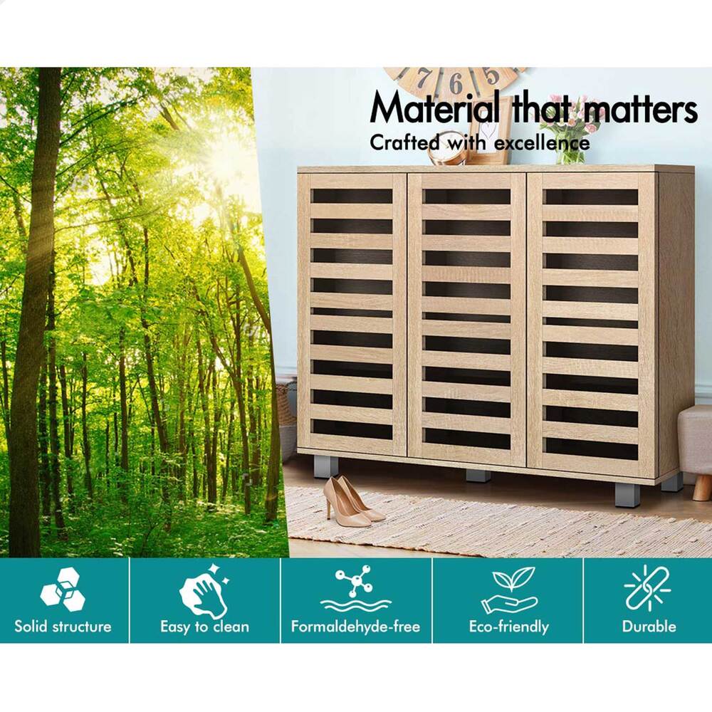 Fitted with three slatted doors and 15 customized shelves giving this piece enough space for up to 30 pairs of shoes ranging from slippers to high boots. Slits within the doors enable air circulation and prevent mould growth on your shoes.