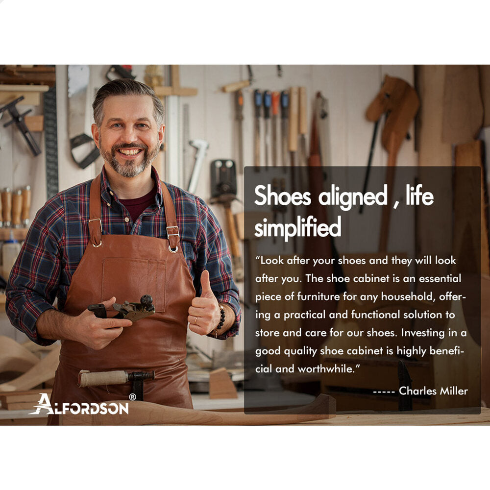 Boots in the entryway? Flats and sneakers in four different rooms? Shoes are placed in clutters? It's time to keep your shoes organized with an ALFORDSON® shoe storage cabinet. Featuring a clean-lined silhouette design, this shoe cabinet is easy to coordinate with any style of decor.