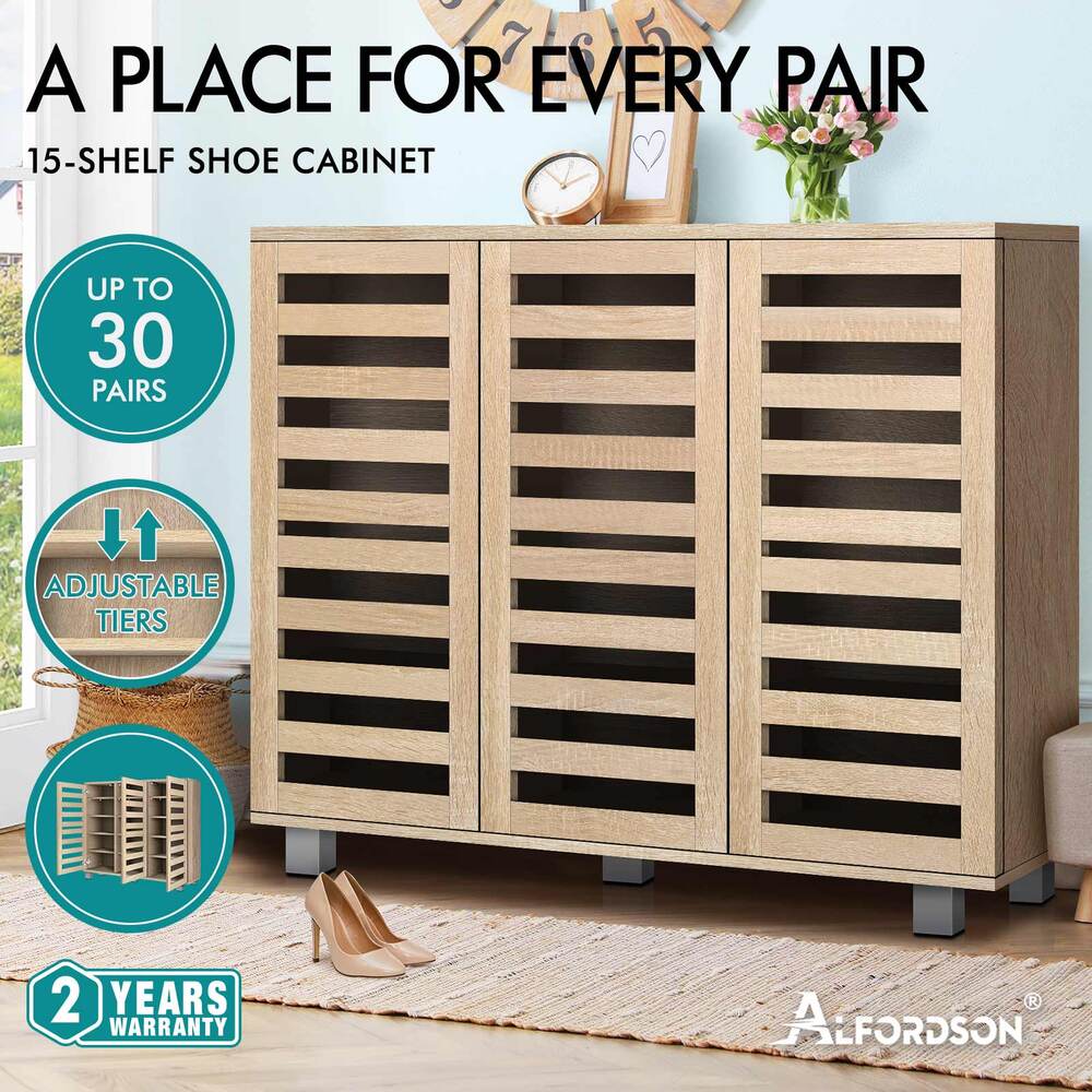 ALFORDSON Shoe Cabinet Organiser Storage Rack Drawer Shelf 30 pairs Oak