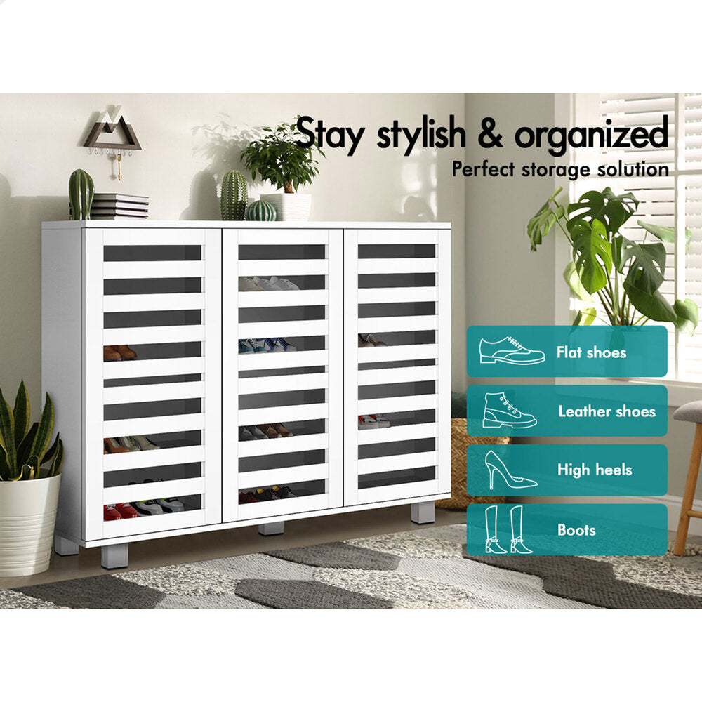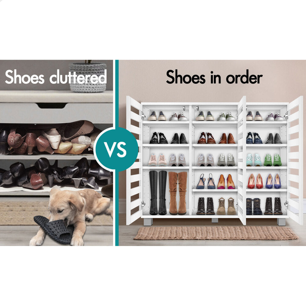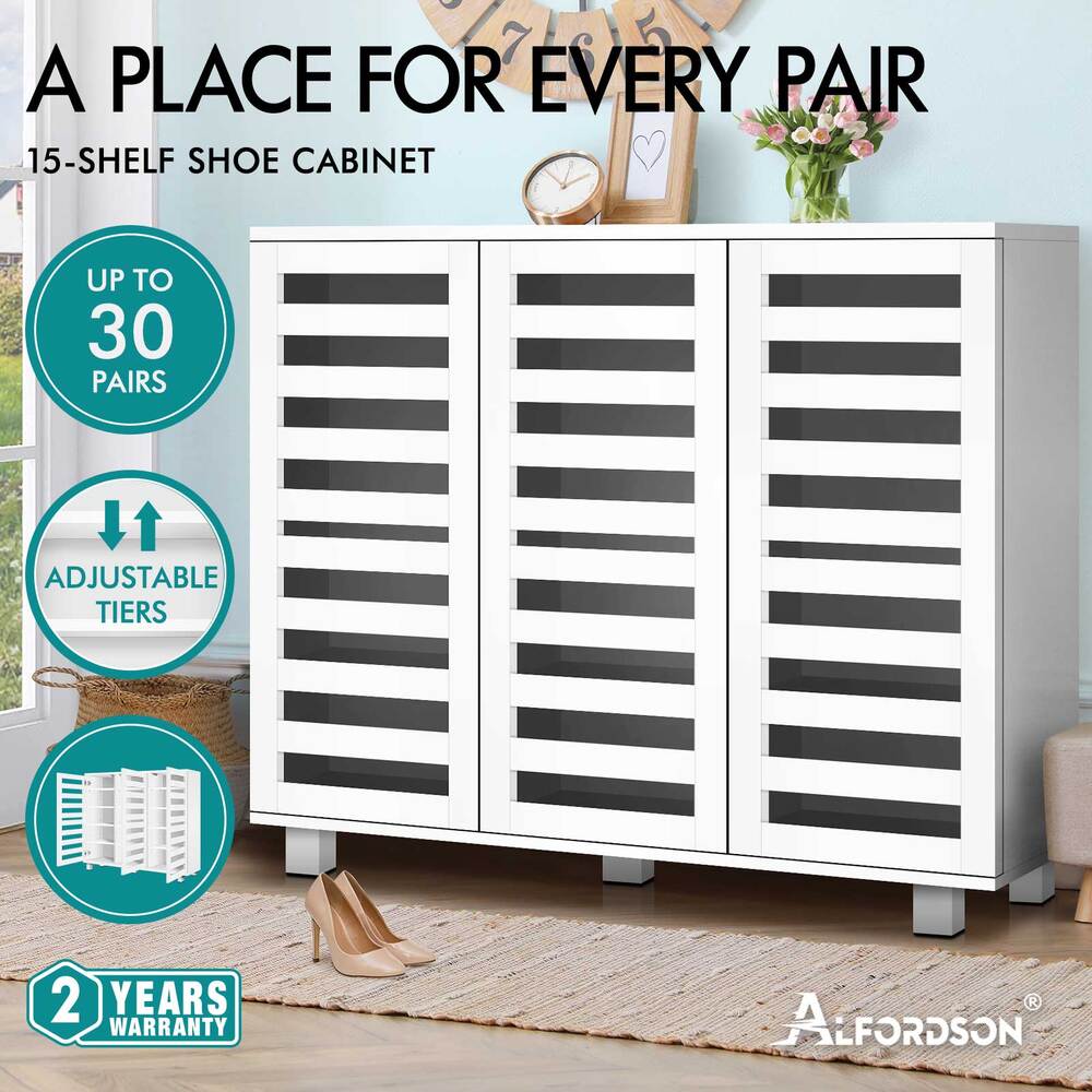 Boots in the entryway? Flats and sneakers in four different rooms? Shoes are placed in clutters? It's time to keep your shoes organized with an ALFORDSON® shoe storage cabinet. Featuring a clean-lined silhouette design, this shoe cabinet is easy to coordinate with any style of decor.