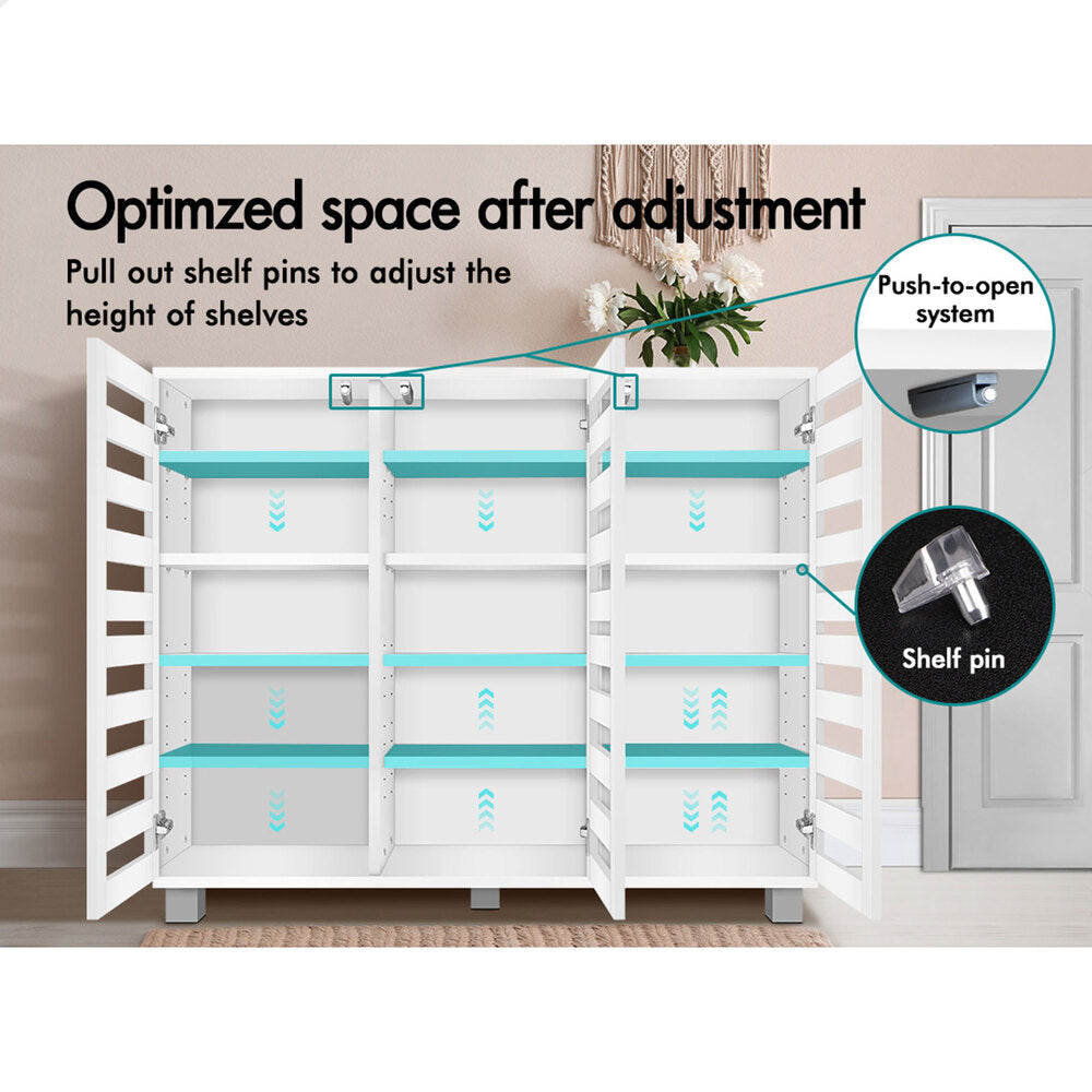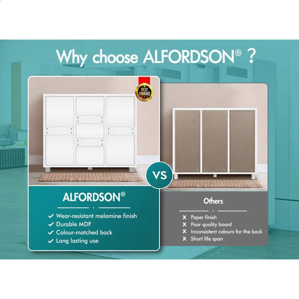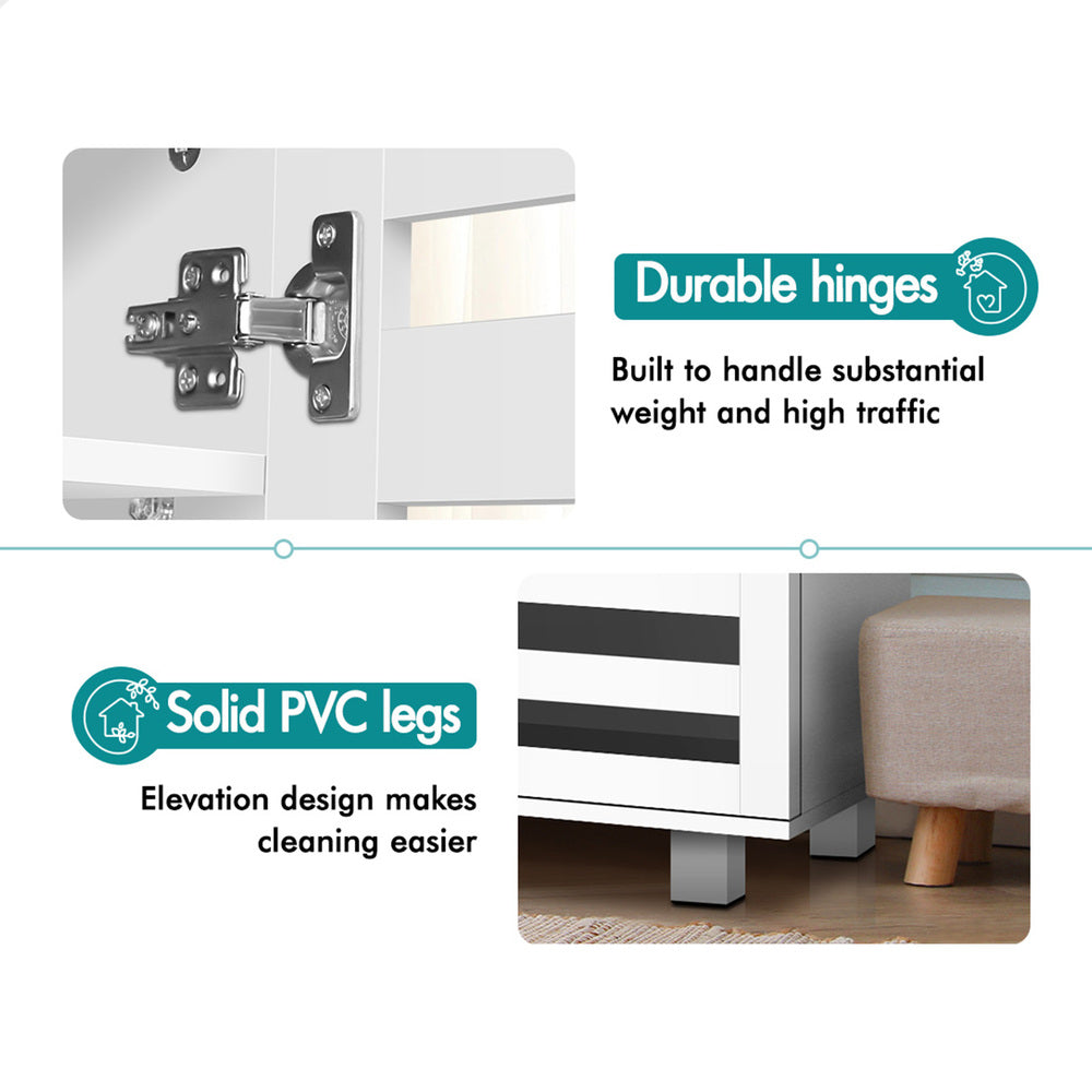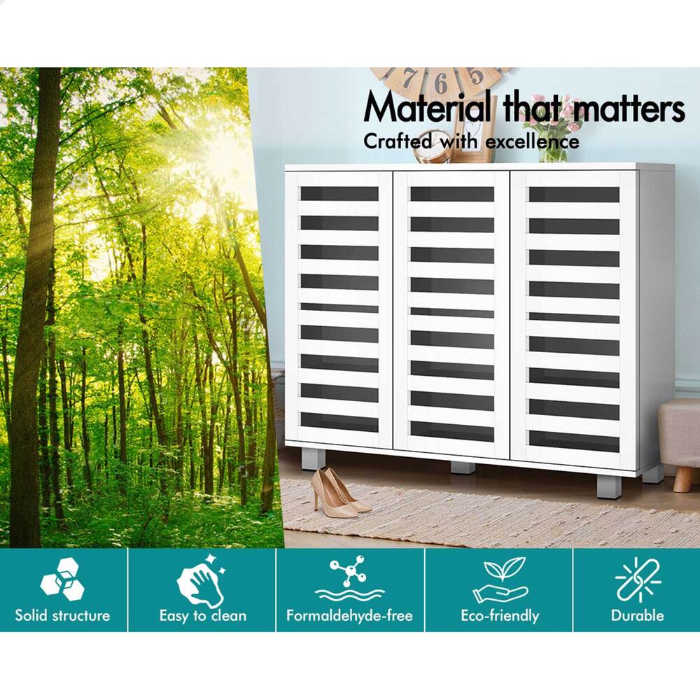 Boots in the entryway? Flats and sneakers in four different rooms? Shoes are placed in clutters? It's time to keep your shoes organized with an ALFORDSON® shoe storage cabinet. Featuring a clean-lined silhouette design, this shoe cabinet is easy to coordinate with any style of decor.