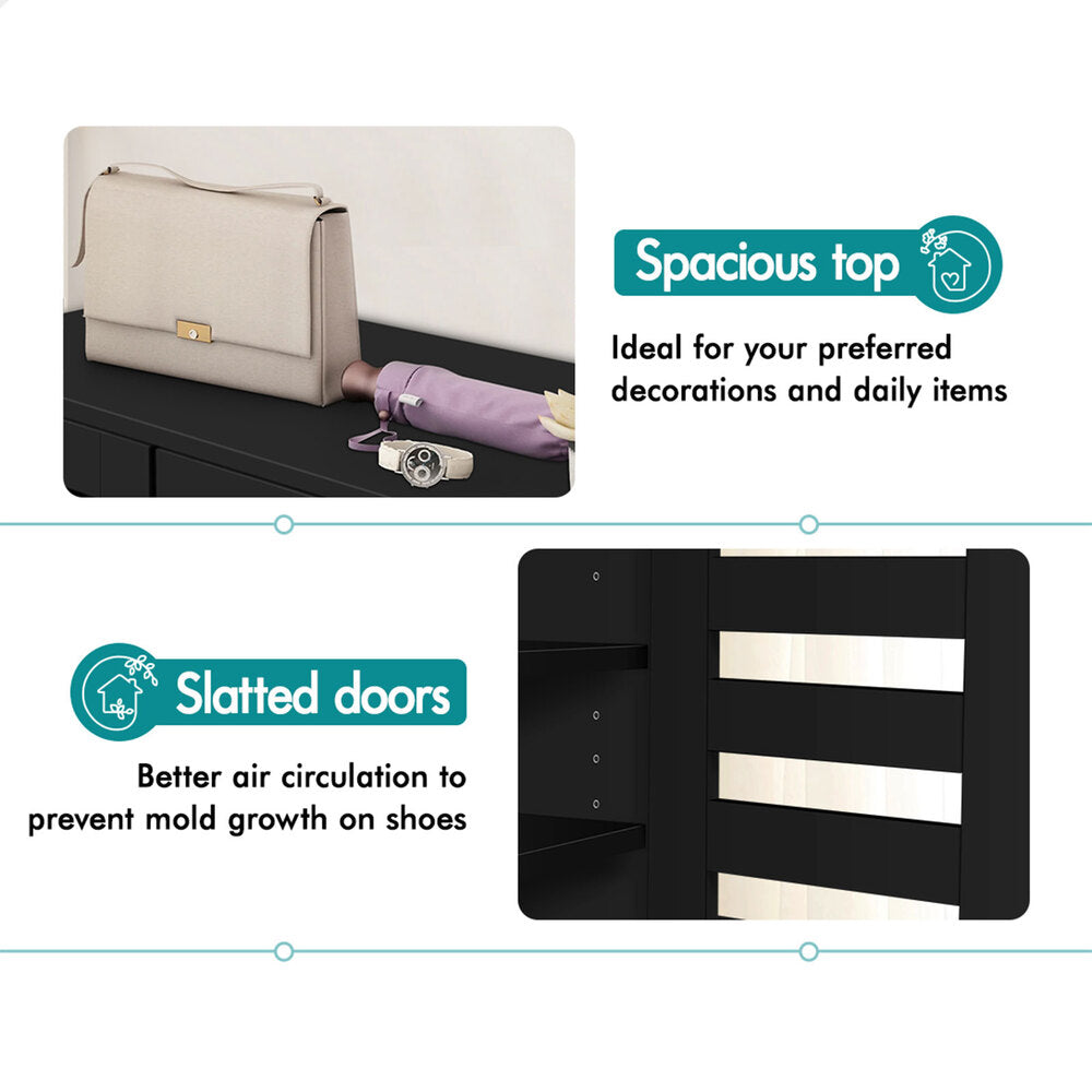 Fitted with two slatted doors with 5 customized shelves giving this piece enough space for up to 21 pairs of shoes ranging from slippers to high boots. Slits within the doors enable air circulation and prevent mould growth on your shoes.