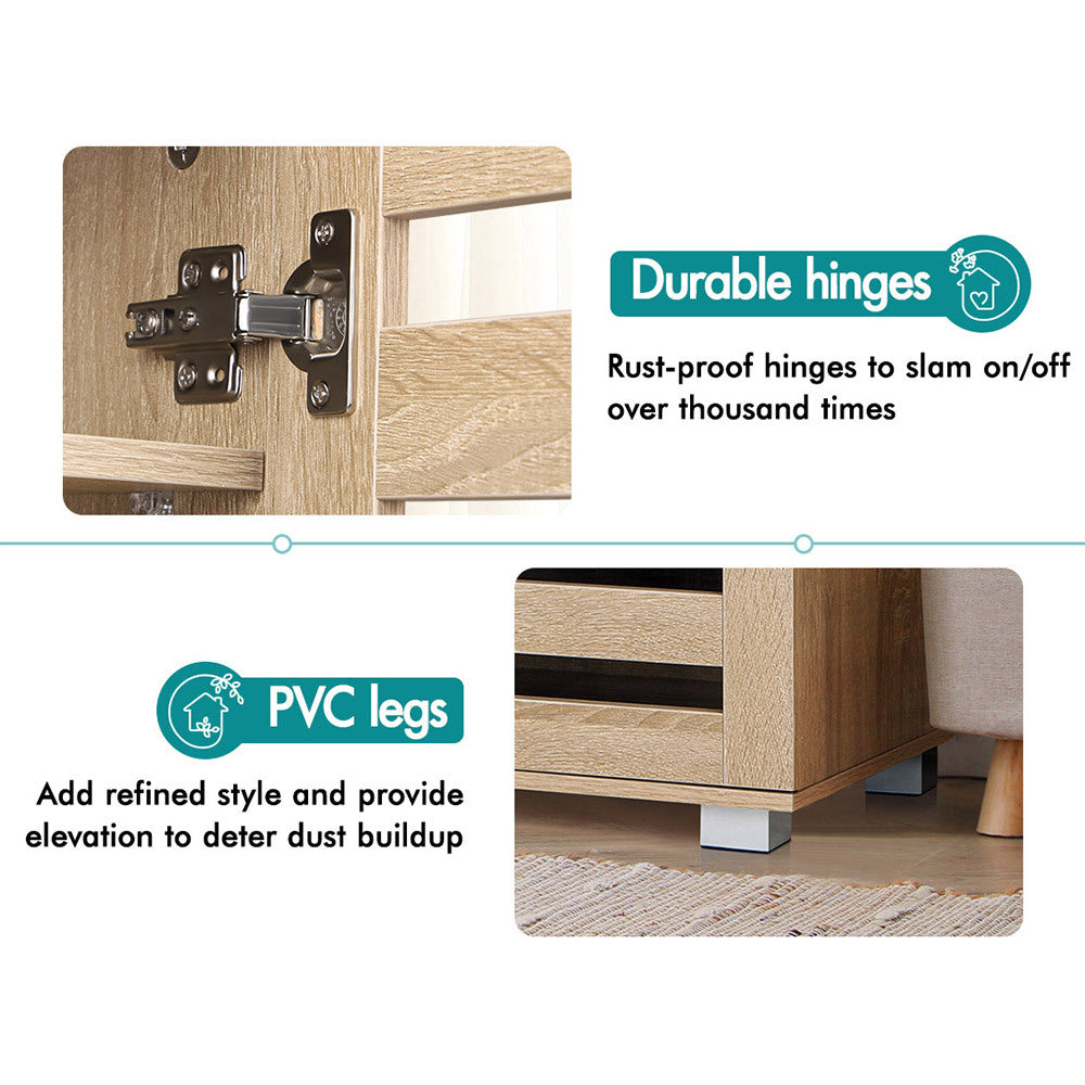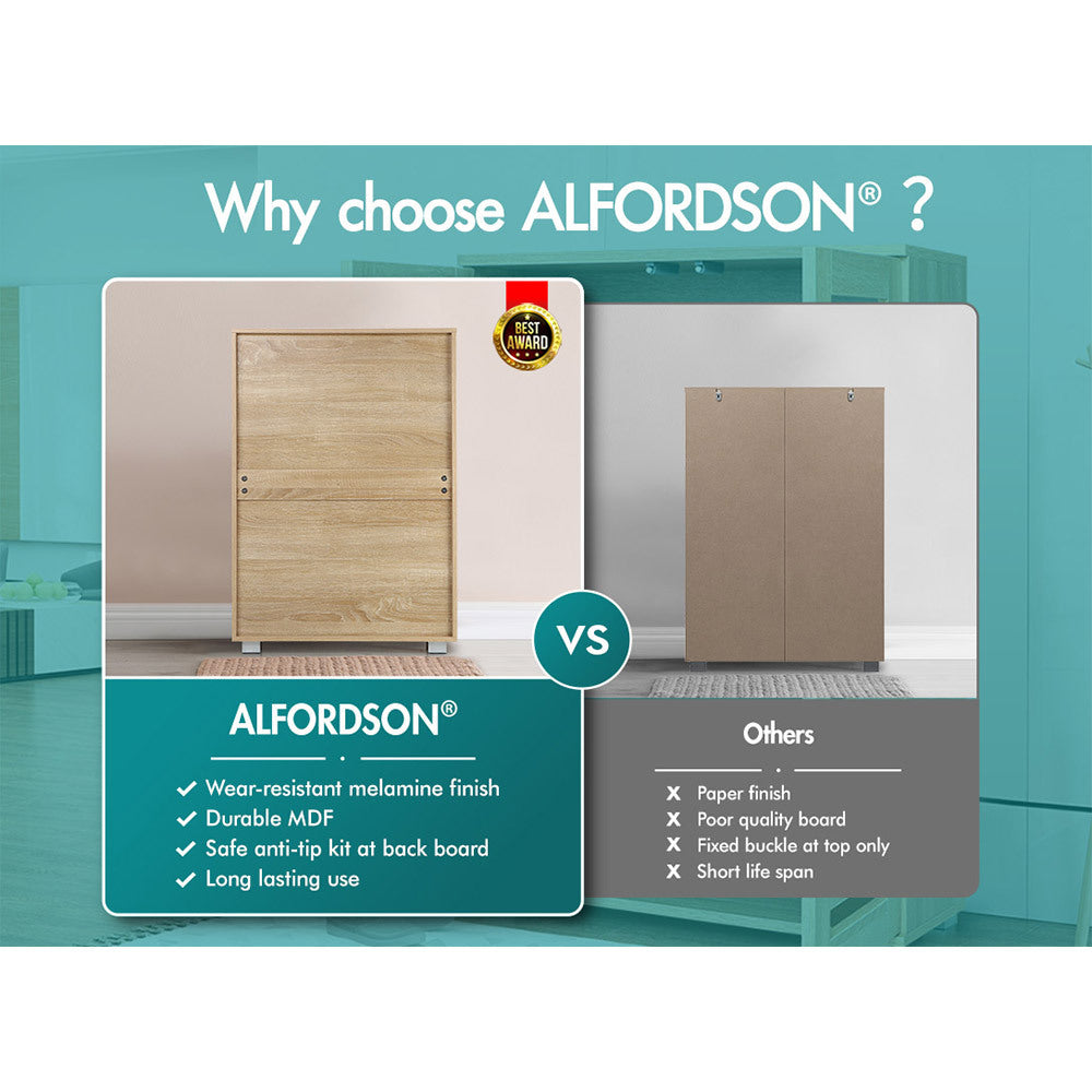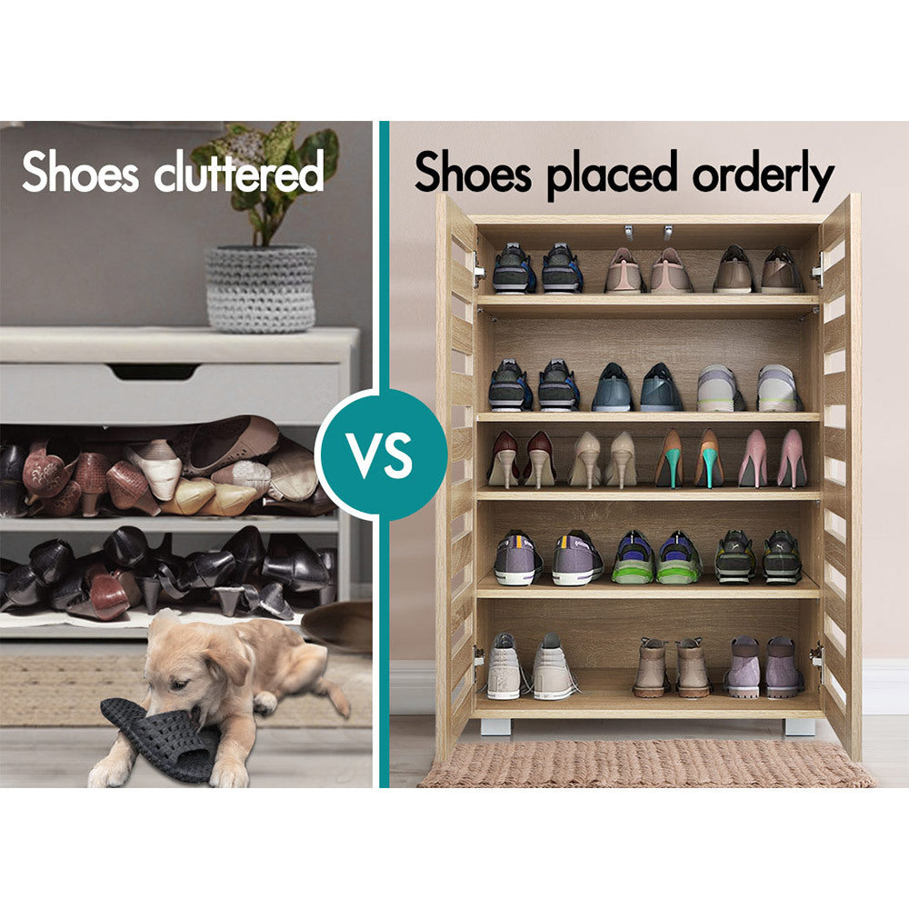 Boots in the entryway? Flats and sneakers in four different rooms? Shoes are placed in clutters? It's time to keep your shoes organized with an ALFORDSON shoe storage cabinet. Featuring a clean-lined silhouette design, this shoe cabinet is easy to coordinate with any style of decor.