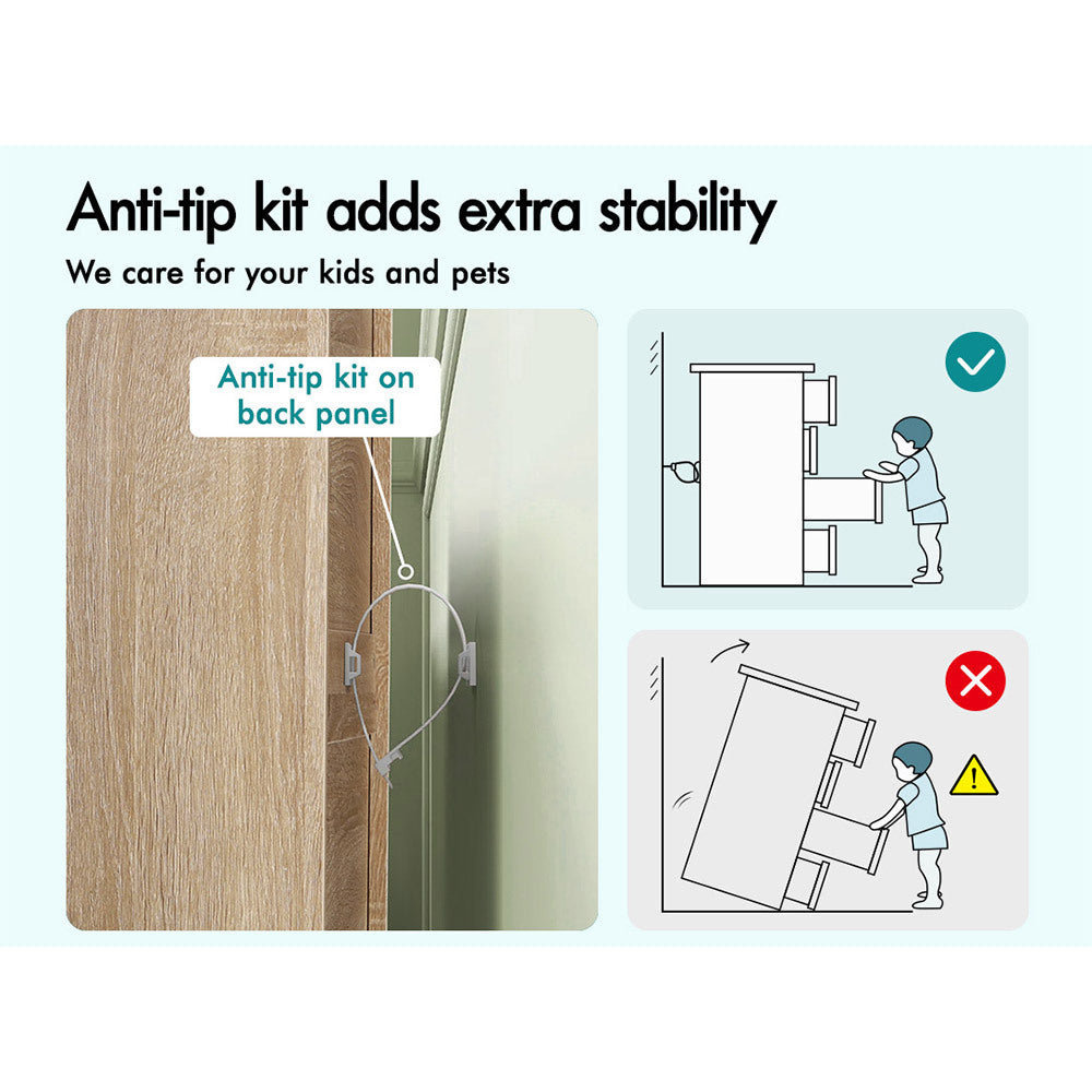Constructed from solid engineered wood with meticulous craftsmanship, the shoe cabinet leaves not only elegant but also sturdy and made to last. We care for your kids and pets. To add extra stability, an anti-tip kit is equipped for the linkage between the cabinet and the wall.