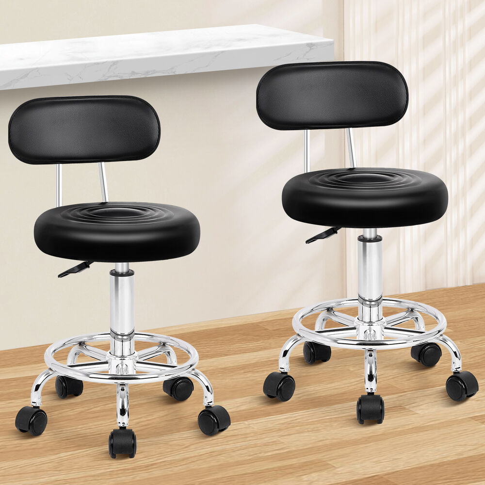 ALFORDSON 2x Salon Stool Backrest Swivel Barber Hair Dress Chair Declan Black