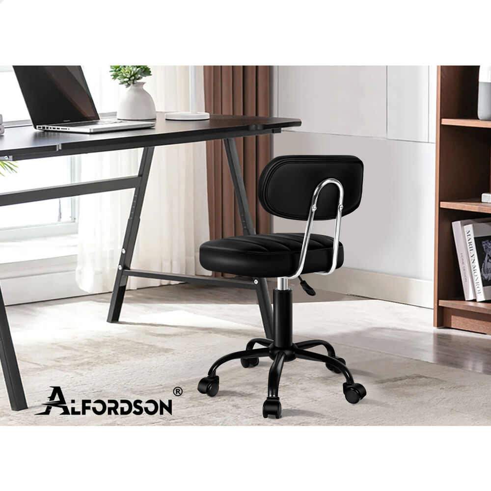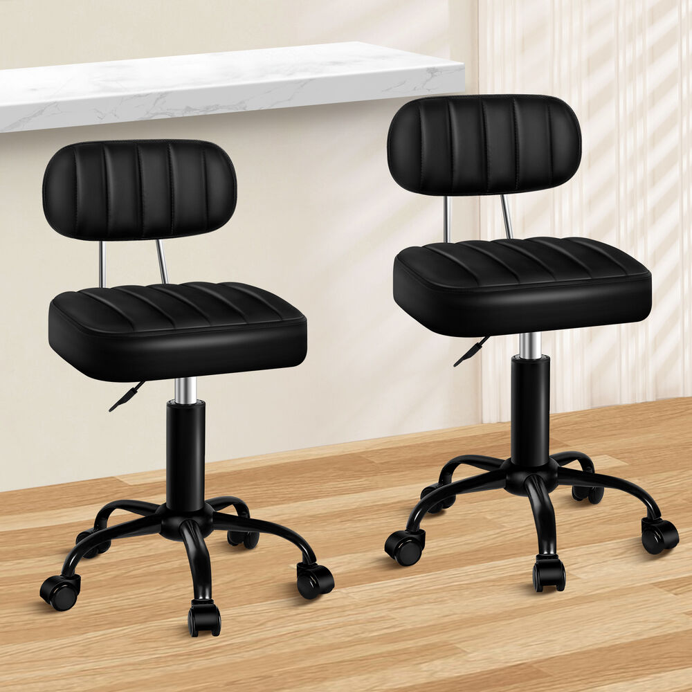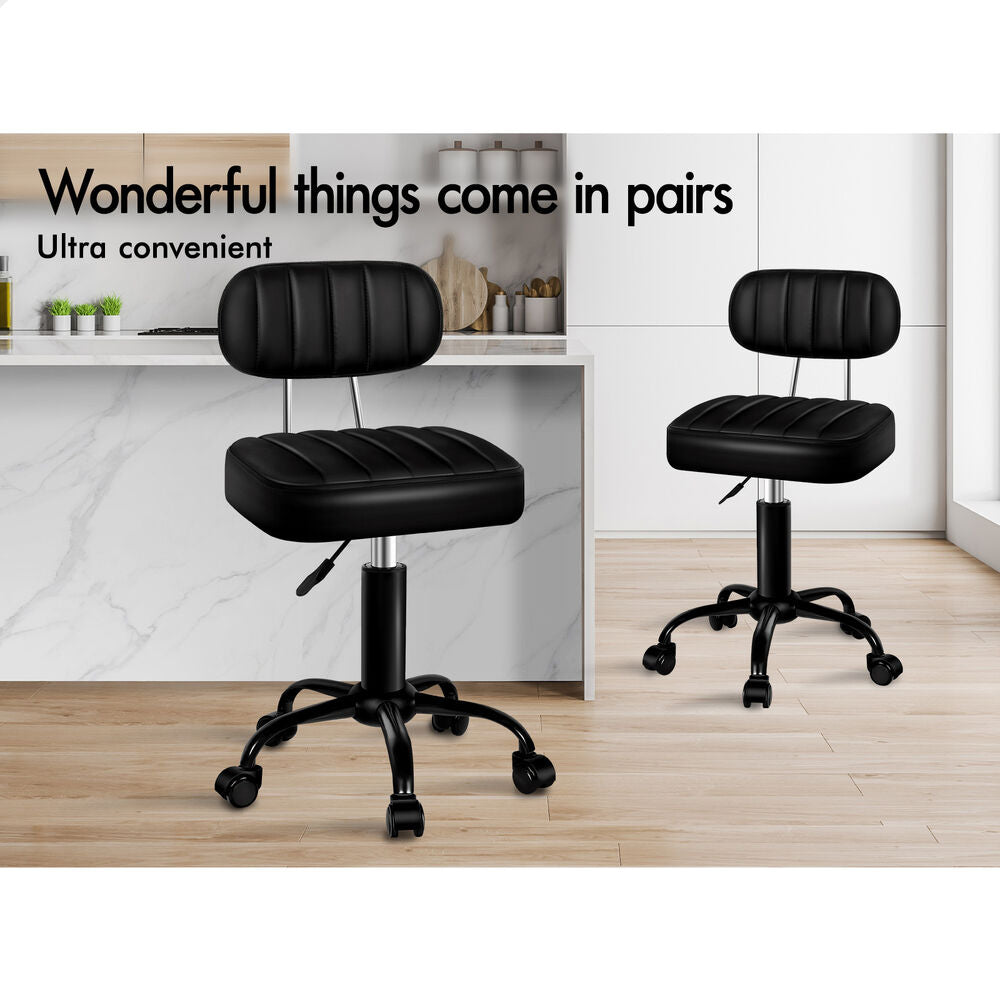 ALFORDSON 2x Salon Stool Backrest Swivel Barber Hair Dress Chair Lina All Black