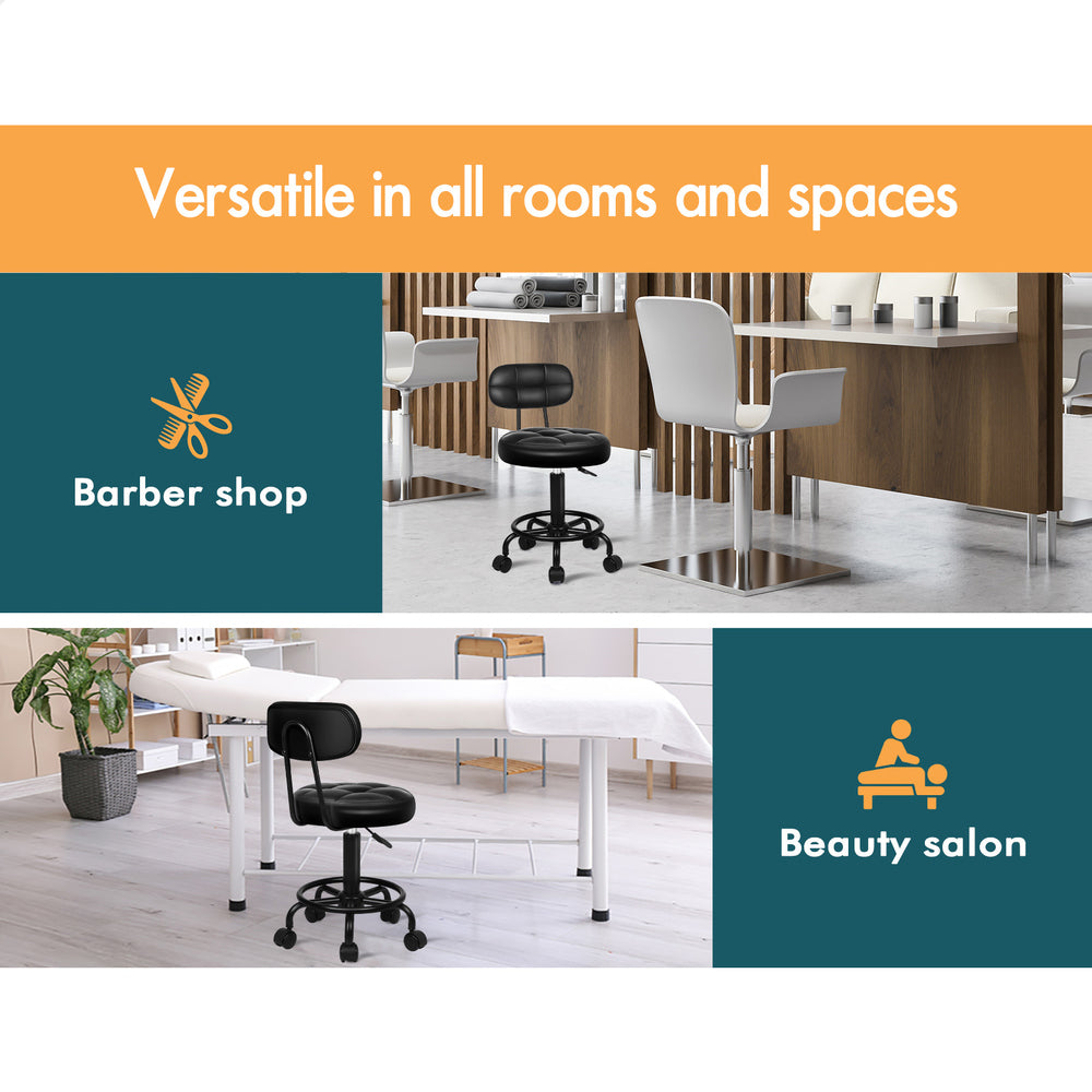 ALFORDSON Salon Stool Backrest Swivel Barber Hair Dress Chair Riley All Black