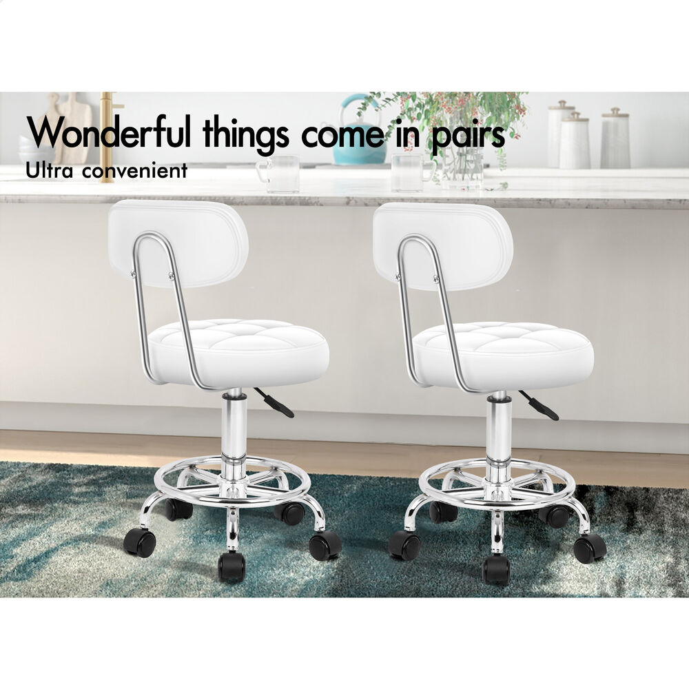 ALFORDSON 2x Salon Stool Backrest Swivel Barber Hair Dress Chair Riley White