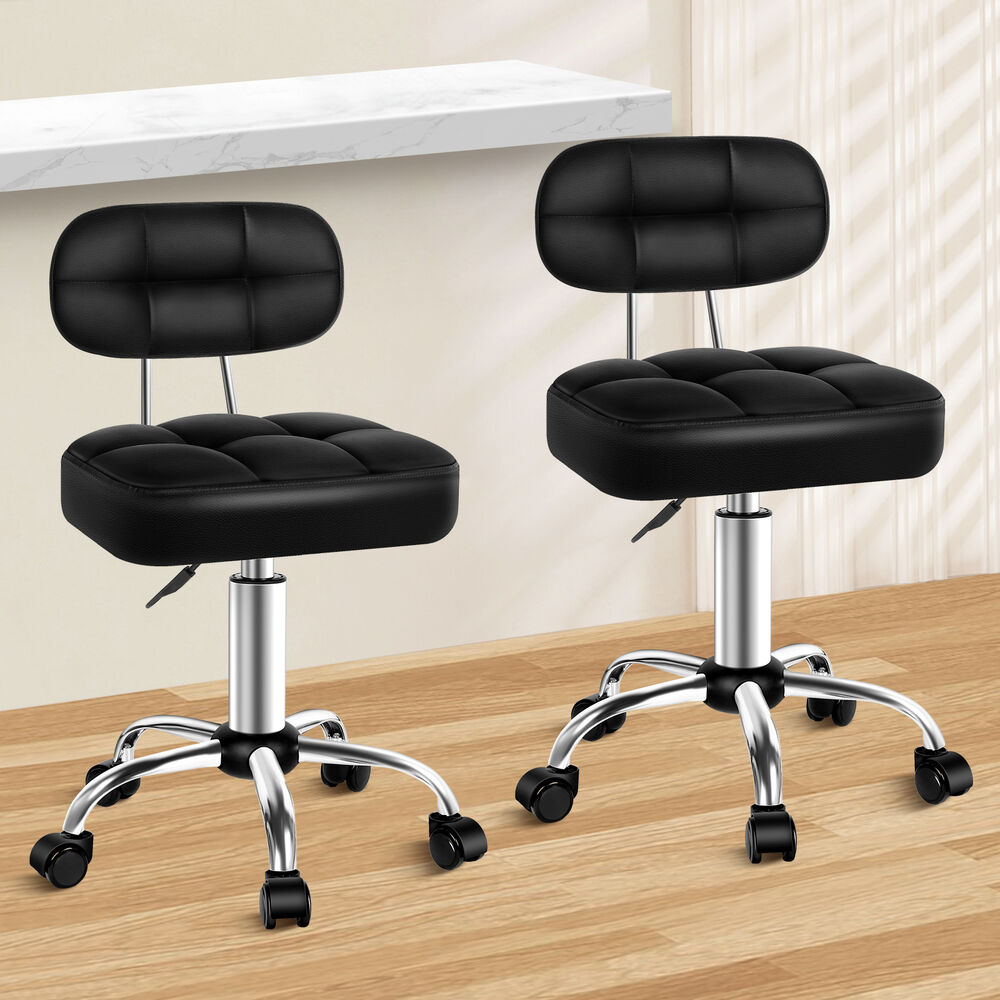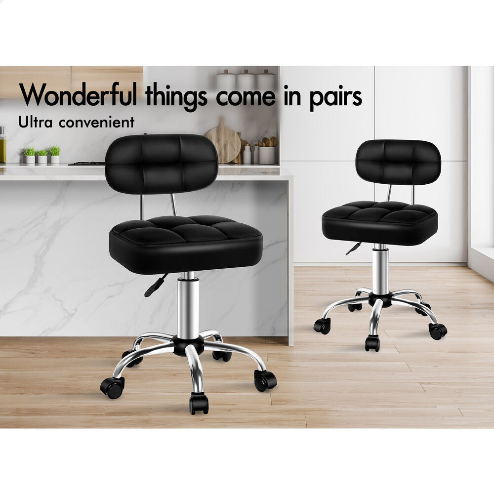 ALFORDSON 2x Salon Stool Backrest Swivel Barber Hair Dress Chair Tufan Black