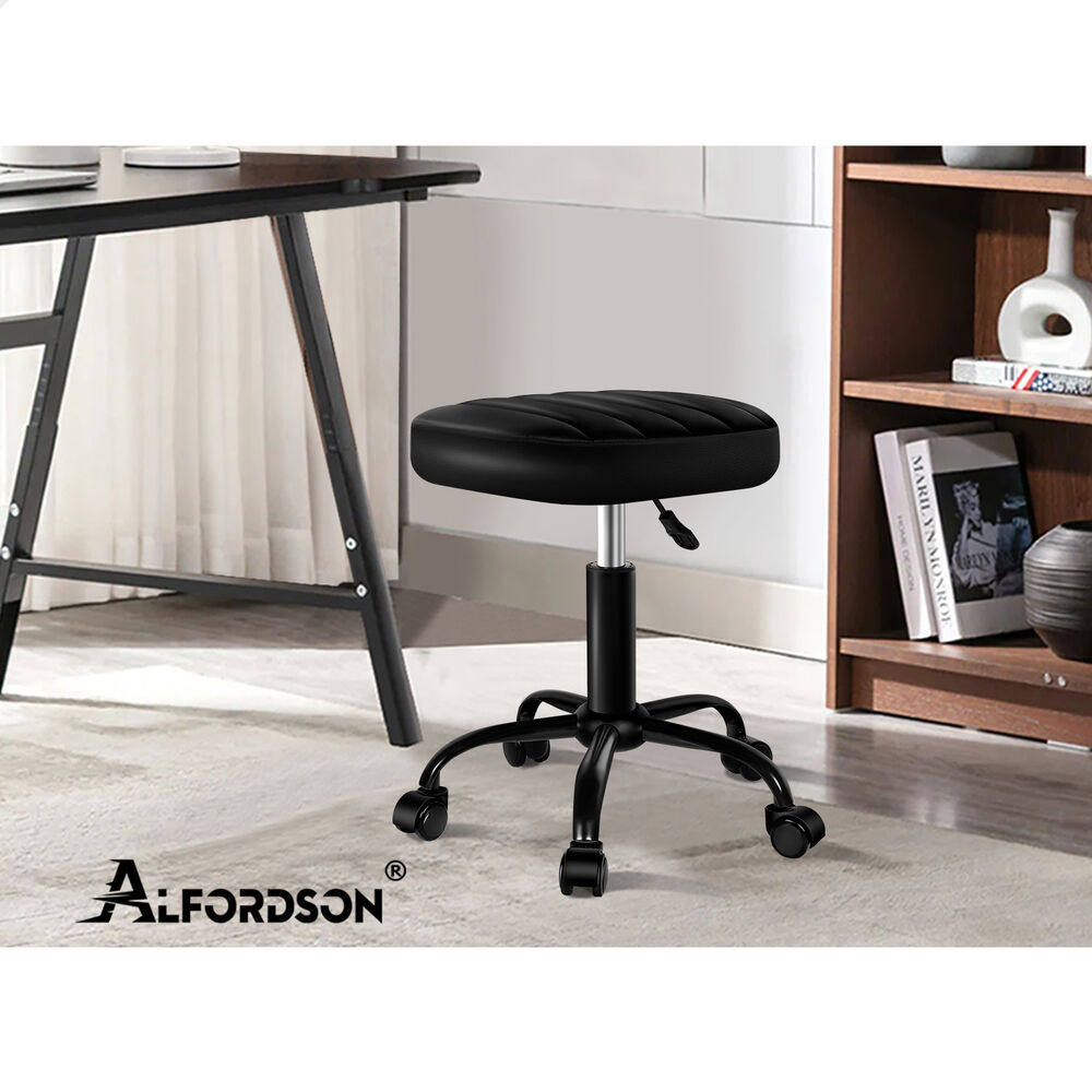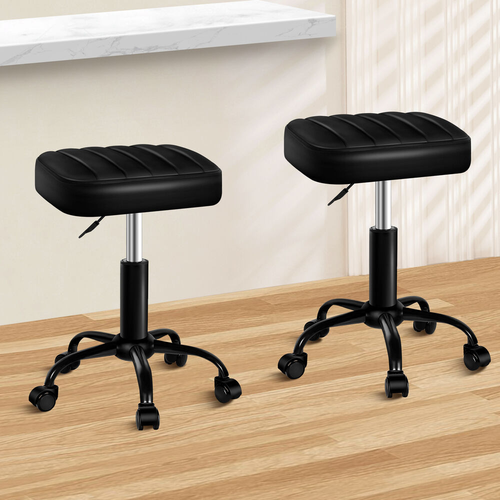 ALFORDSON 2x Salon Stool Square Swivel Barber Hair Chair Gas Lift All Black
