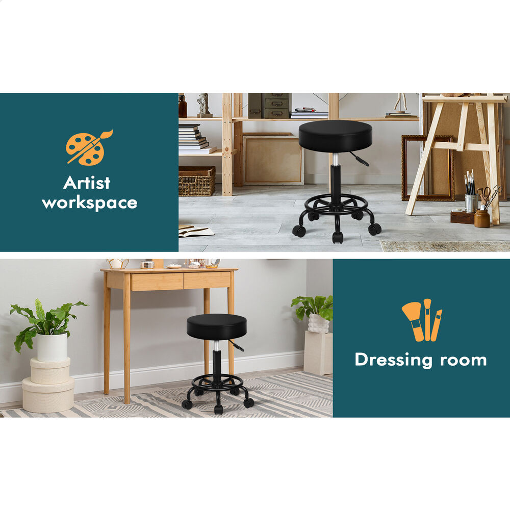 ALFORDSON 2x Salon Stool Round Swivel Barber Hair Dress Chair Gas Lift All Black