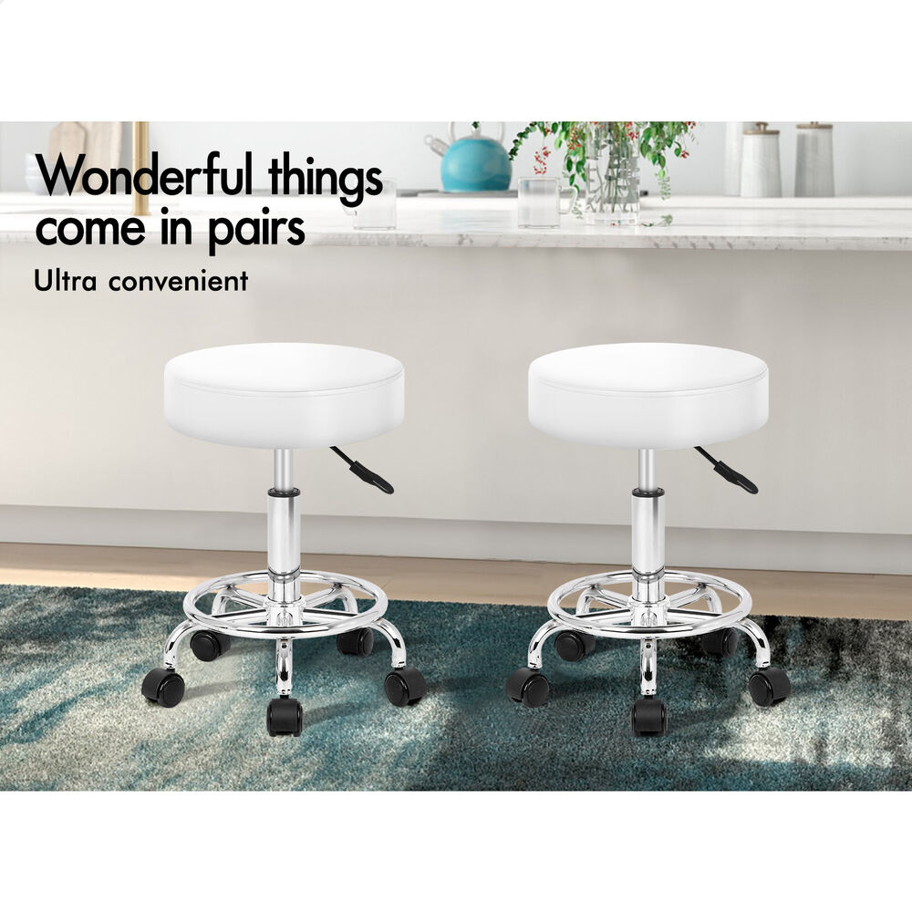 ALFORDSON 2x Salon Stool Round Swivel Barber Hair Dress Chair Gas Lift White