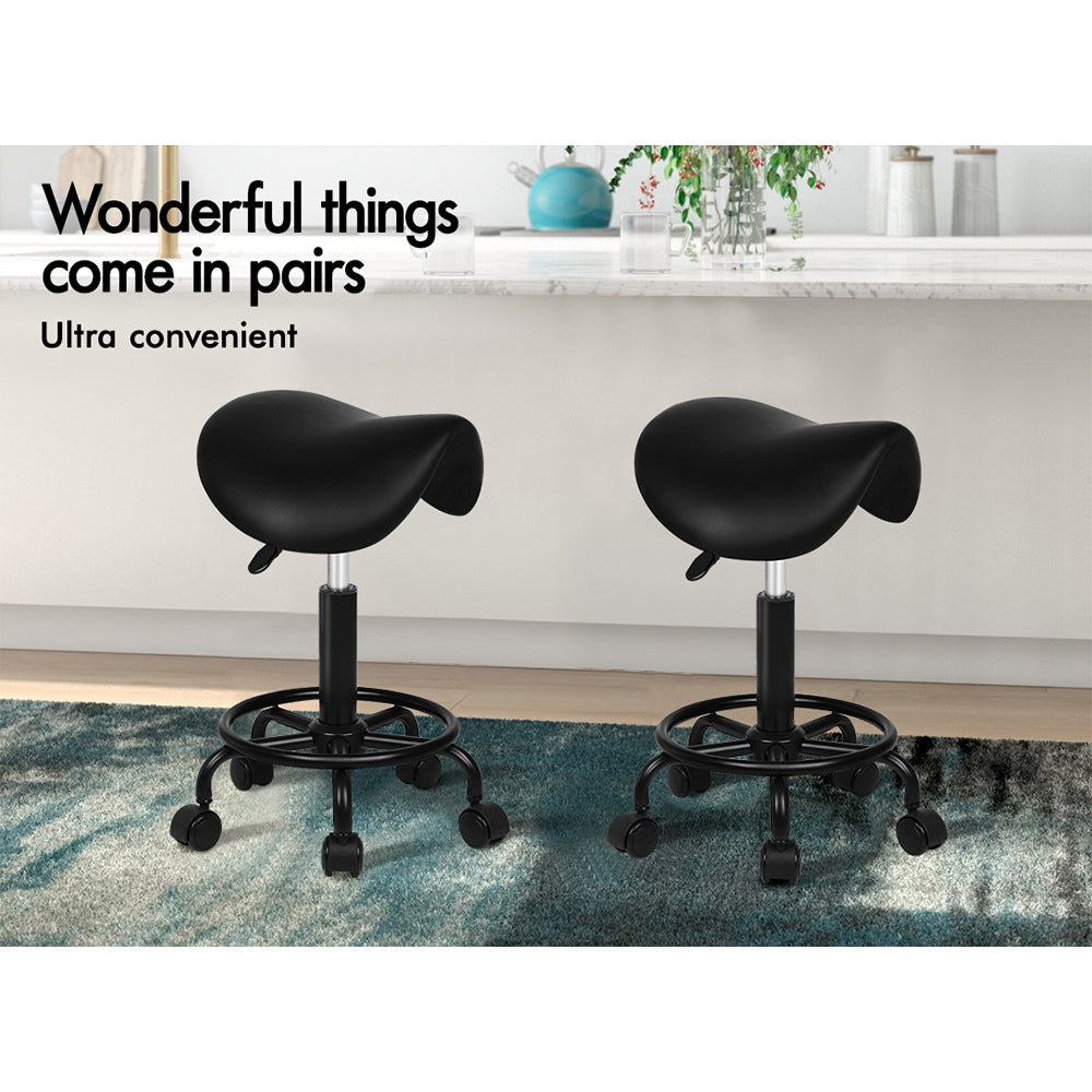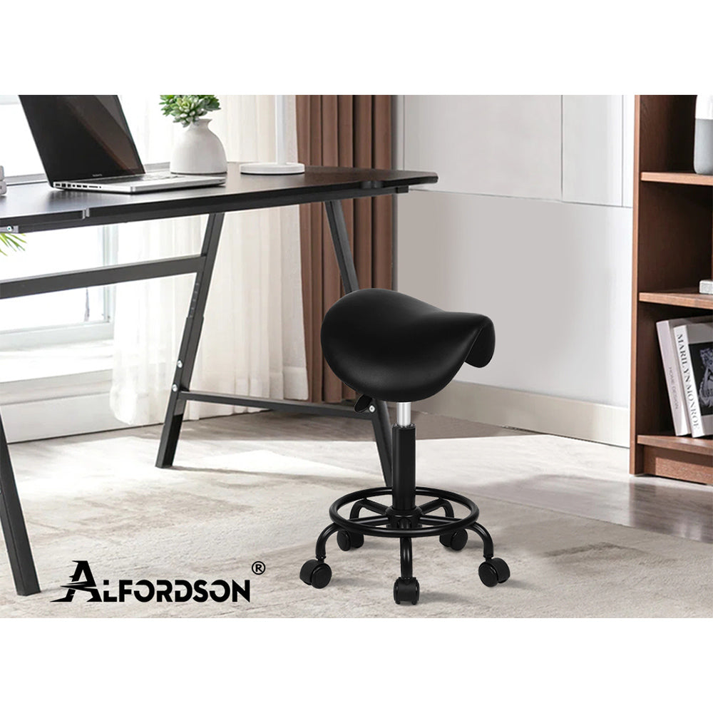 ALFORDSON Salon Stool Saddle Swivel Barber Hair Dress Chair Sierra All Black
