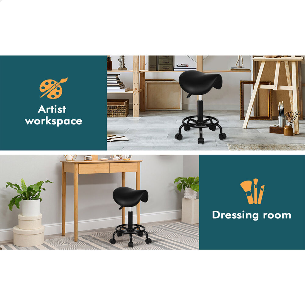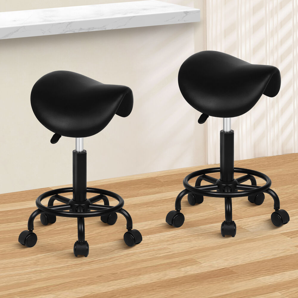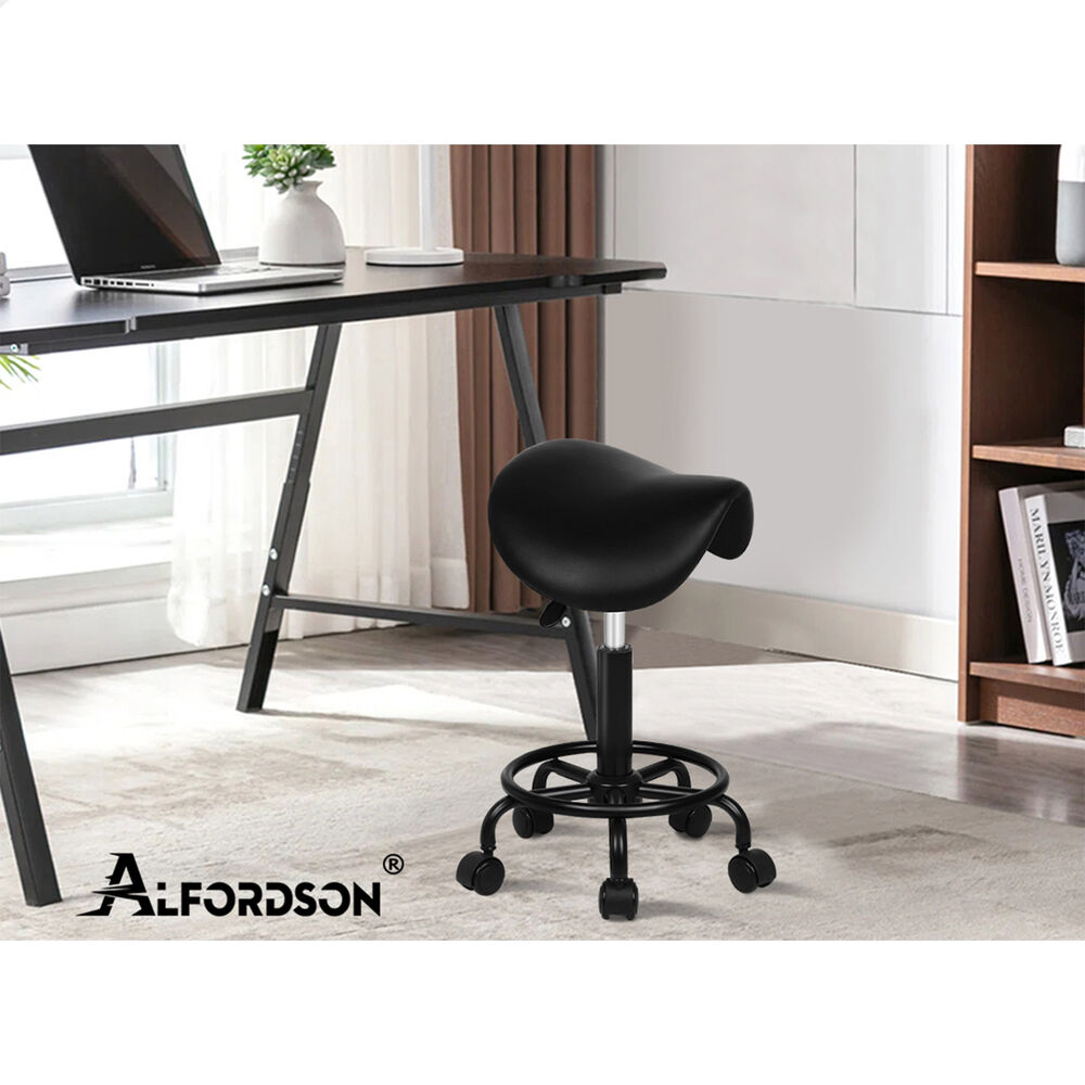 ALFORDSON 2x Salon Stool Saddle Swivel Barber Hair Dress Chair Sierra All Black