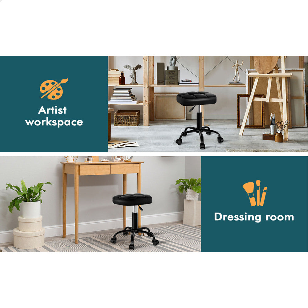 ALFORDSON Salon Stool Square Swivel Barber Hair Dress Chair Gas Lift All Black