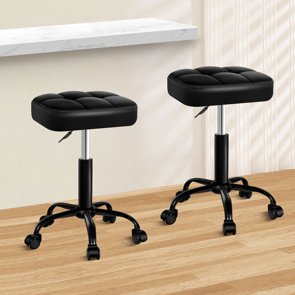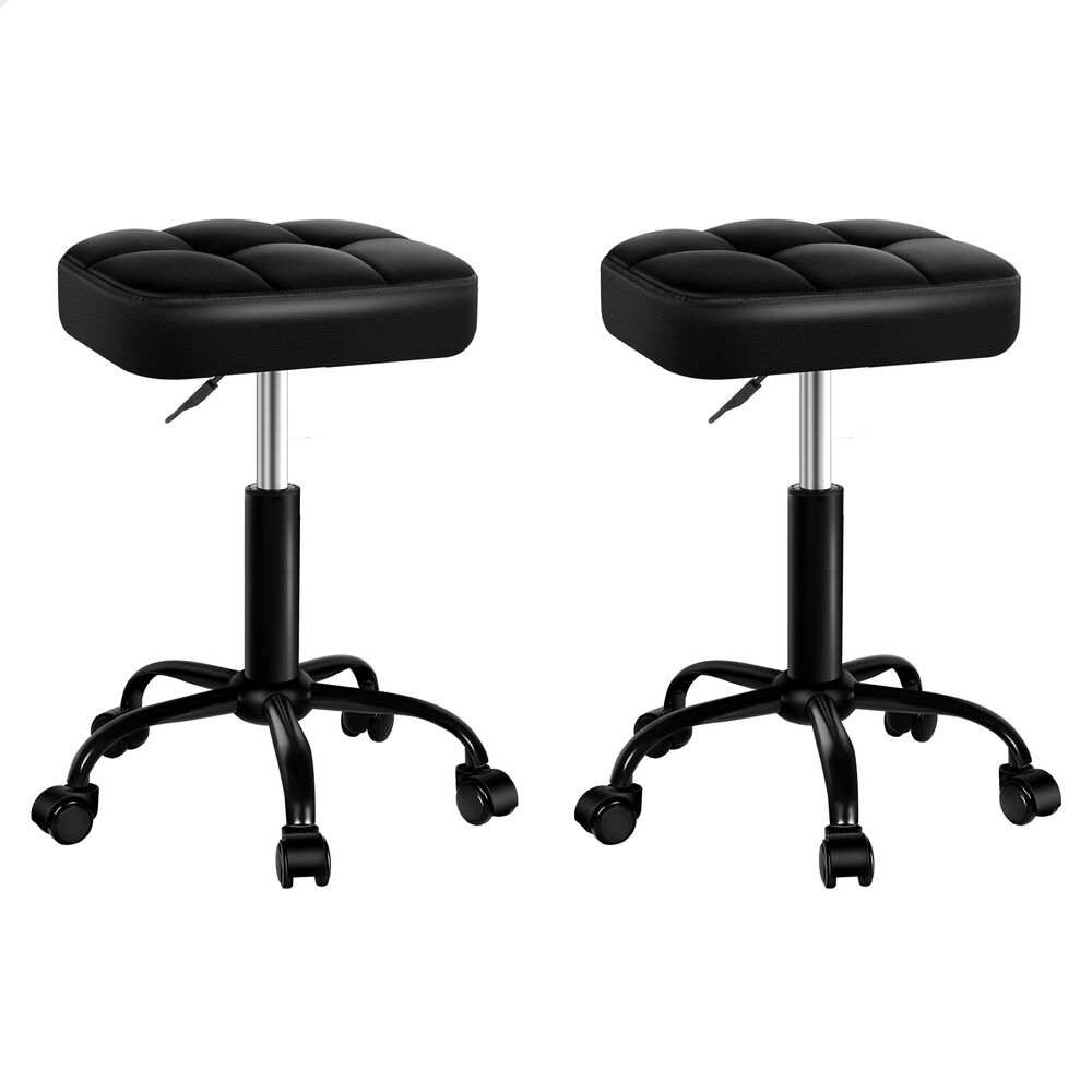 ALFORDSON 2x Salon Stool Square Swivel Barber Hair Chair Gas Lift All Black