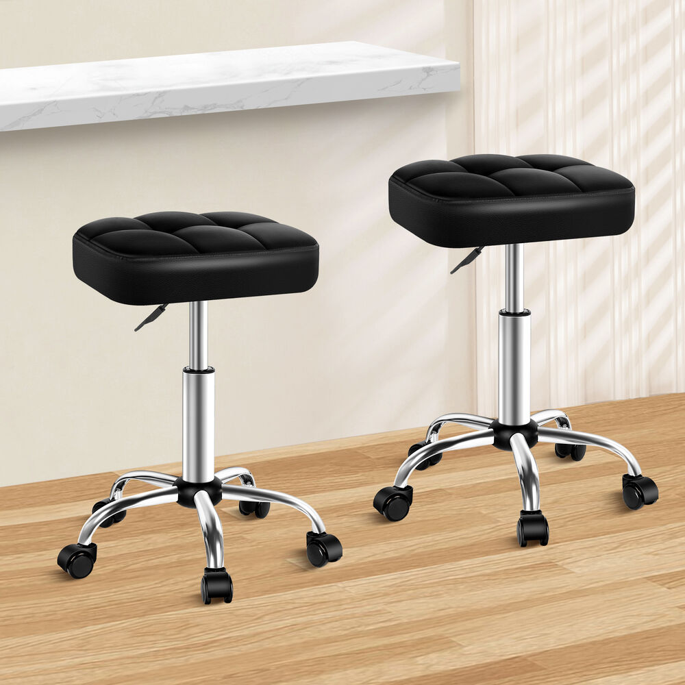 ALFORDSON 2x Salon Stool Square Swivel Barber Hair Dress Chair Gas Lift Black