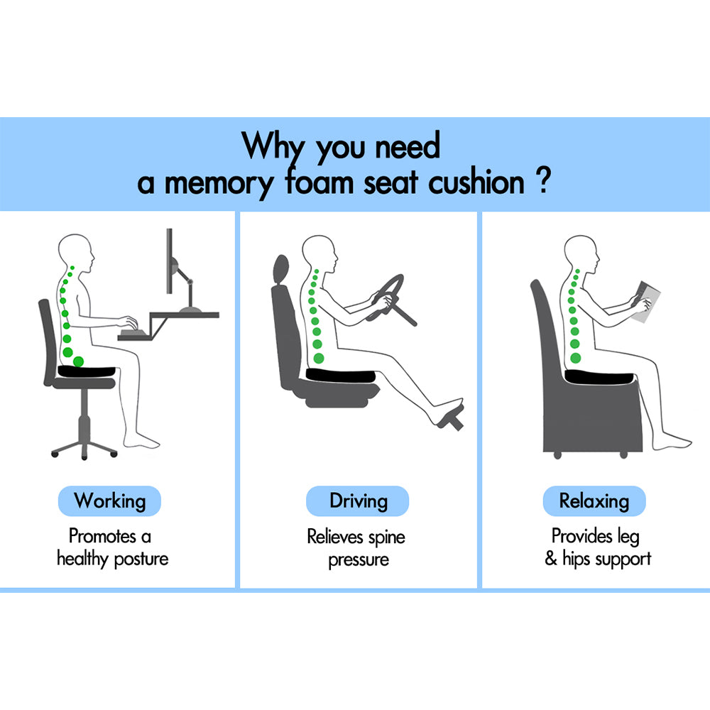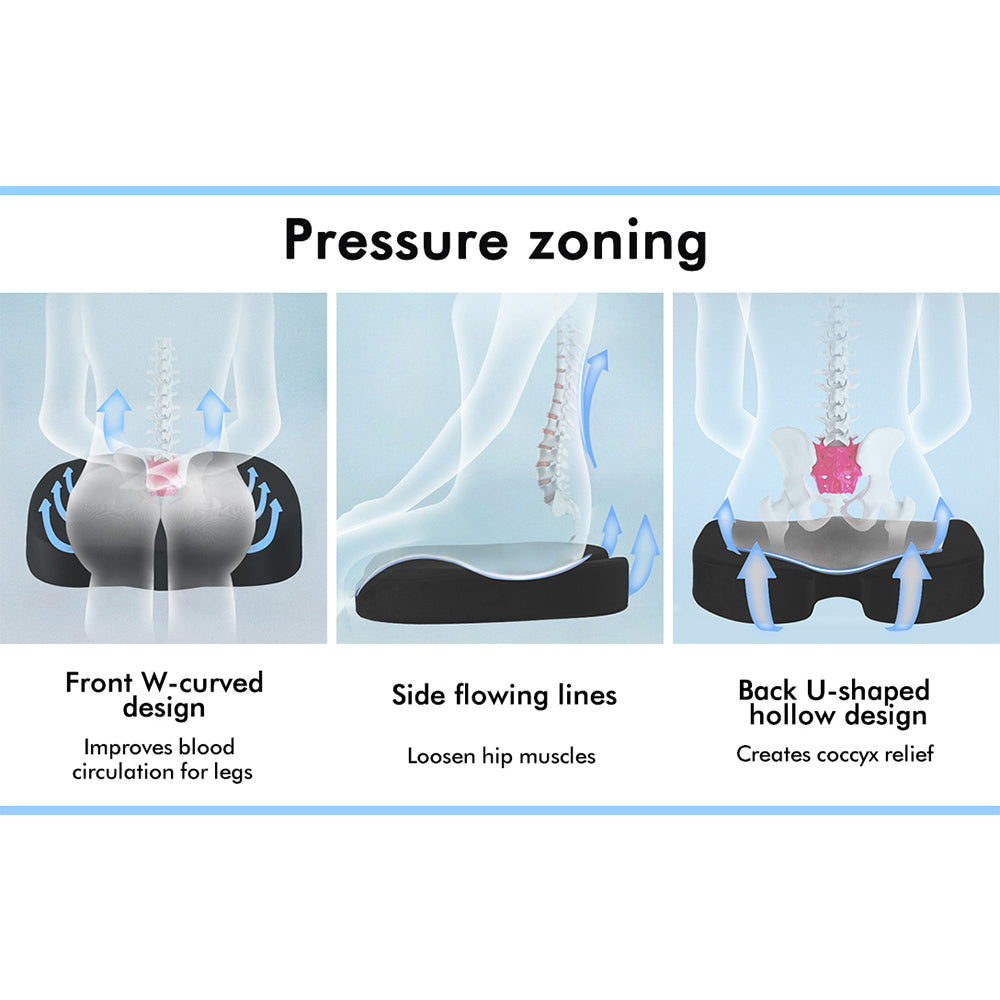 * Ideal for relieving pressure on lower back, hips, legs, coccyx