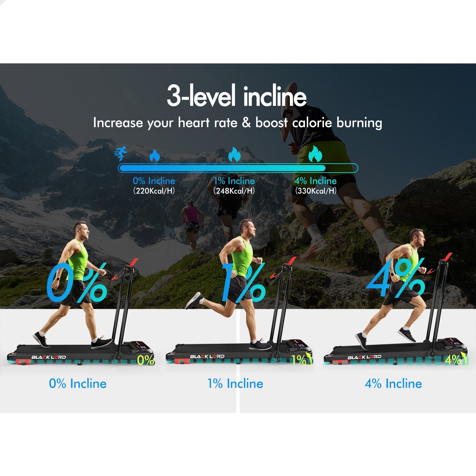 * 3-level incline - increase your heart rate & boost calorie burning
