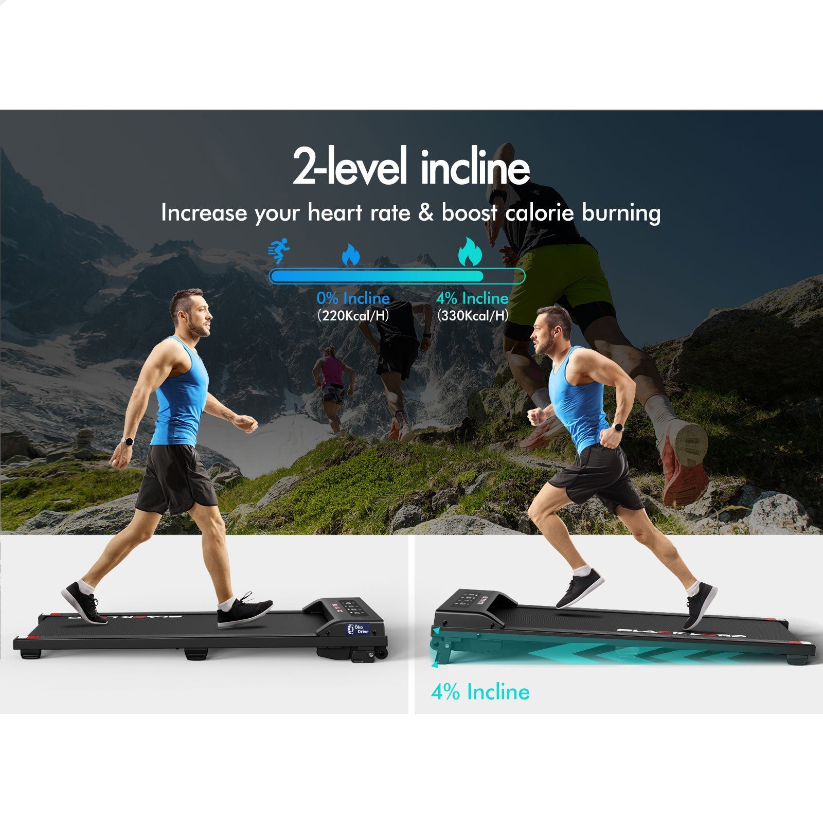 Powered by a 2.3HP ÖkoDrive motor, this walking pad delivers smooth, energy-efficient performance with a speed range of 1-11KM/H, giving you the perfect pace whether you're warming up or pushing your limits. Elevate your training potential with the integrated 2-level incline system, which helps to increase your heart rate and boost calorie burning in tougher workout.