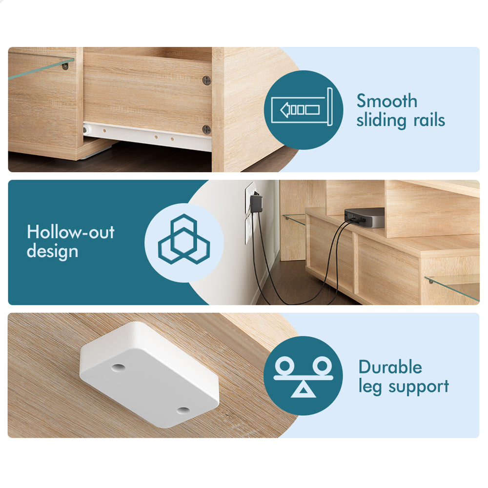 Reliable quality - Made of superior E1 grade and 15mm thick particle board, our entertainment unit is durable and resistant to scratches. Instead of flimsy paper finish, it is well made with smooth melamine finish which is easy to maintain and long lasting. Equipped with push-to-open system, the drawers quietly open and close so you can access your items with ease.