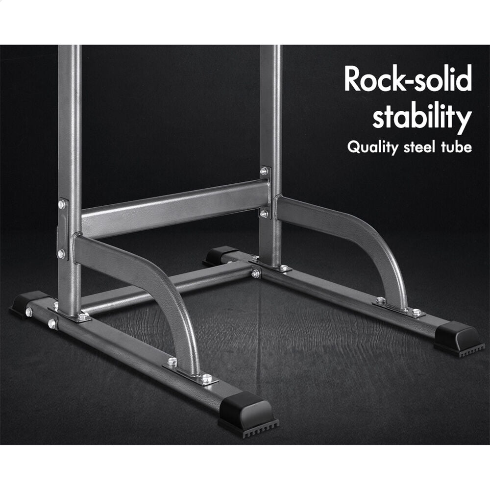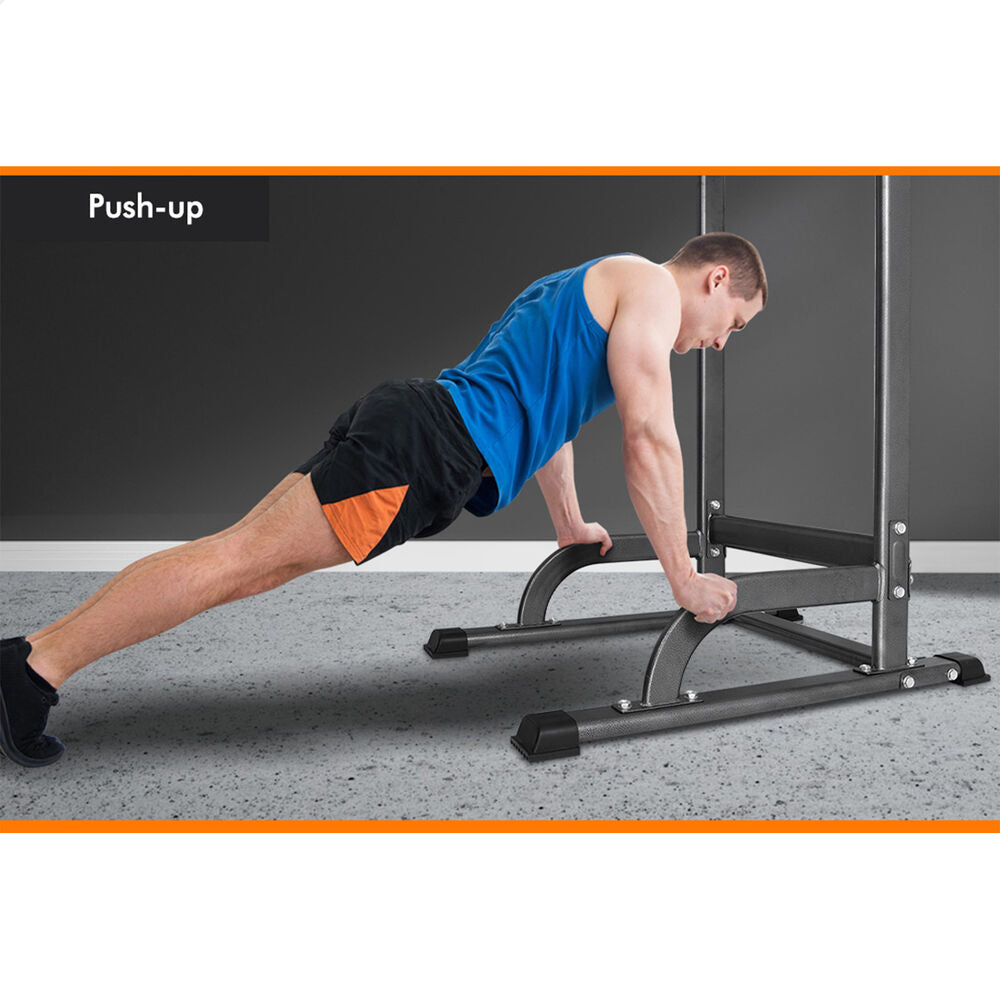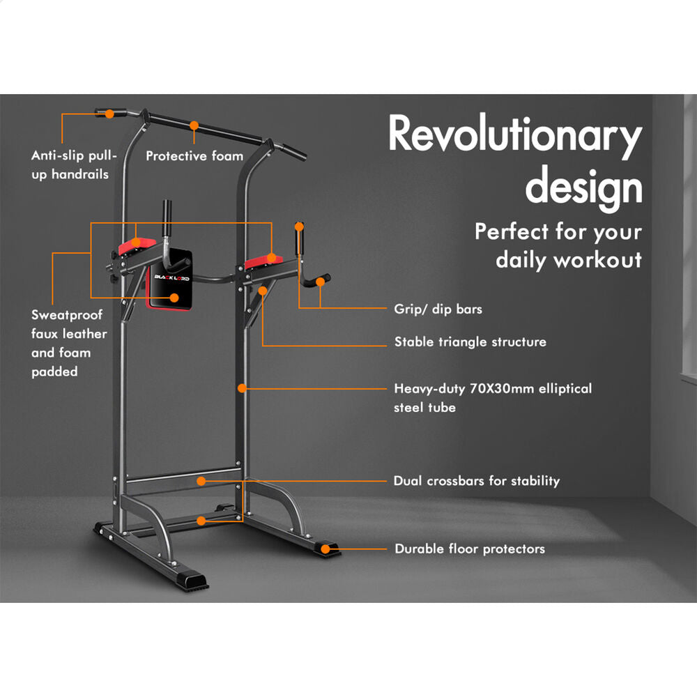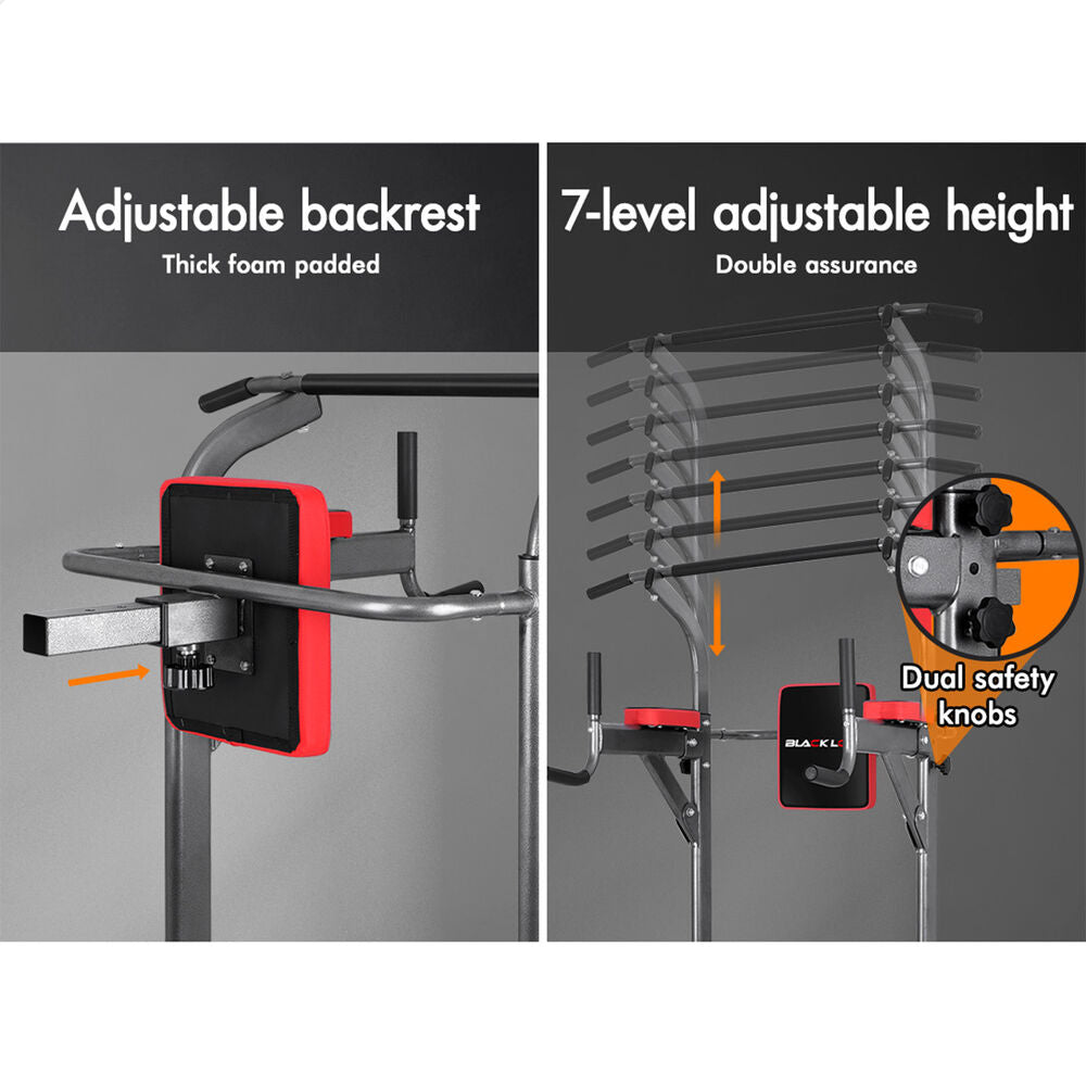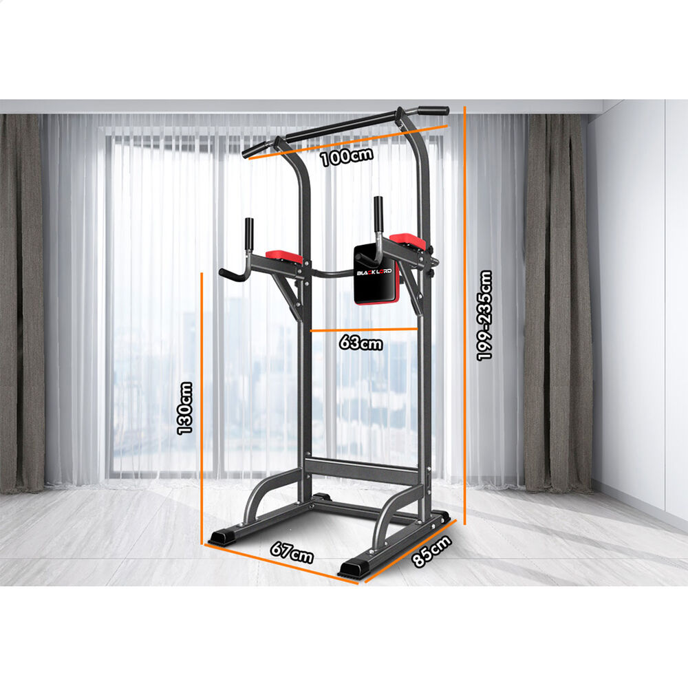 With our BLACK LORD power tower, you can surely maximize your workout time. The design of our power tower is sleek and simple yet it allows for a multitude of different exercises, including pull ups, chin ups, dips, knee raise, deficit push ups, and many more. It's a modern and convenient way of packing as much into your home gym as possible, making the best use of space. Constructed from quality steel, extra-thick foam, and breathable but sweat-proof faux leather, the tower is designed to be durable with 250kg weight capacity and offers rock-solid stability. The gorgeous powder-coated paint job will keep it looking fresh for years to come. Best of all, this power tower has support in all the right places, including a padded back support which makes sure you feel great during intense sessions. Crafted with safety in mind, the tower is also equipped with sturdy rubber feet to keep the metal frame from damaging flooring and to keep the tower in place.