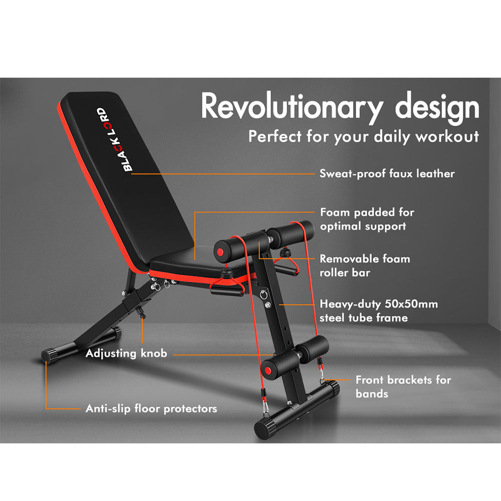 BLACK LORD Weight Bench Adjustable FID Fitness Flat Incline Decline Gym