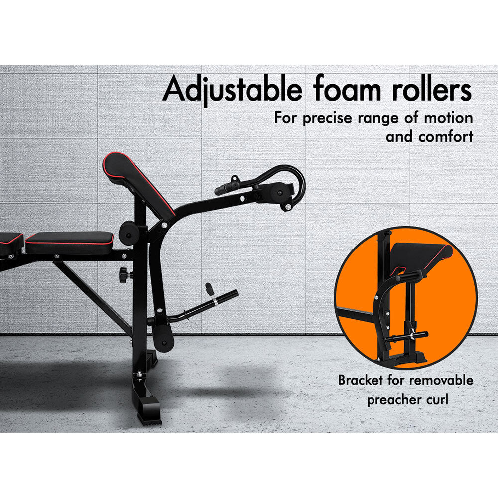 * Inbuilt dual-action leg developer with adjustable foam rollers - perfect for leg curls and lying leg curls