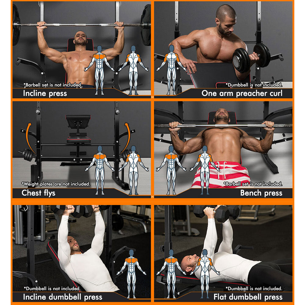 * Perfect for military press, bench press, incline press, chest flys, sit ups, leg curls, lying leg curl, preacher curl exercises, one-arm row