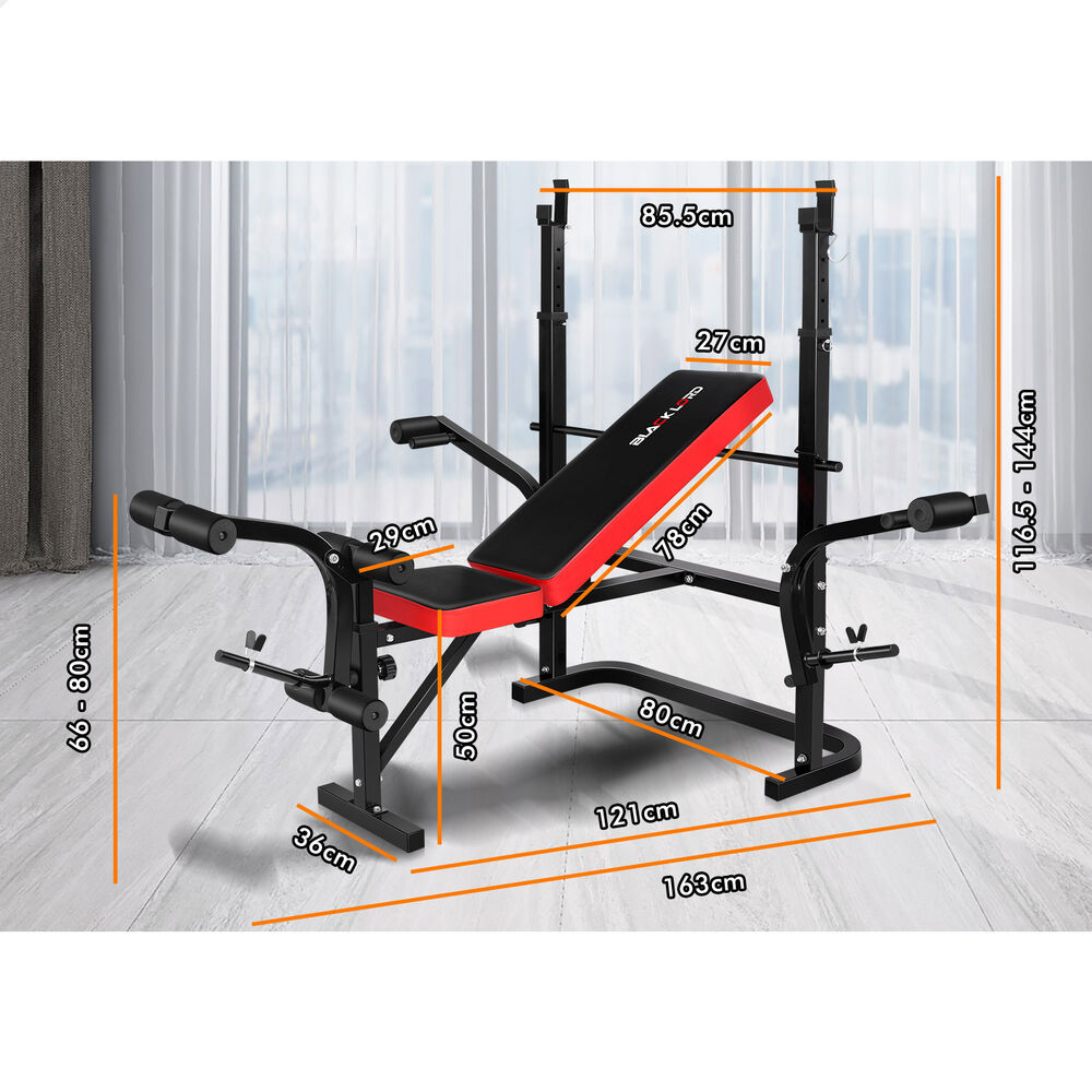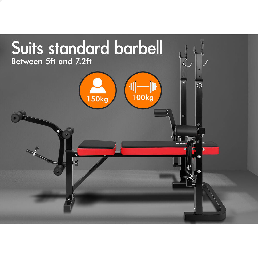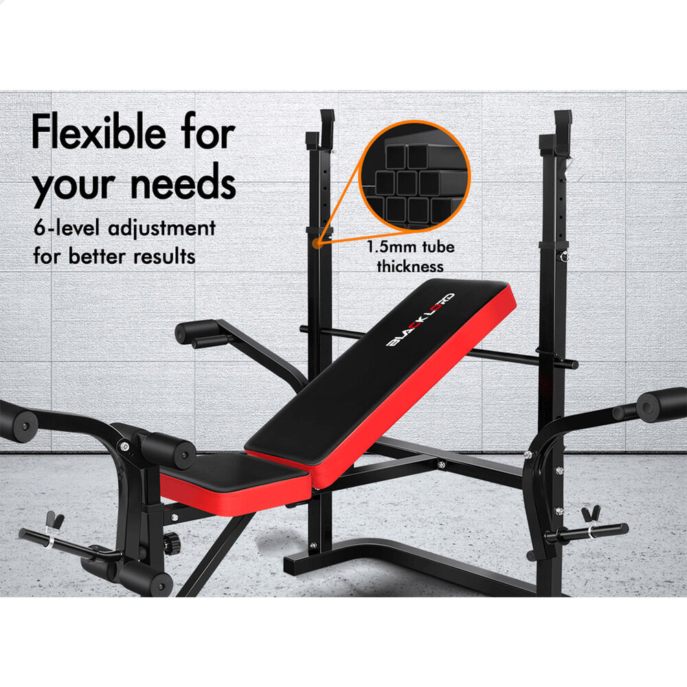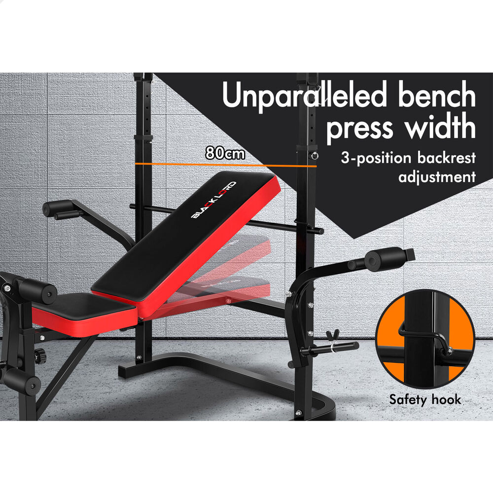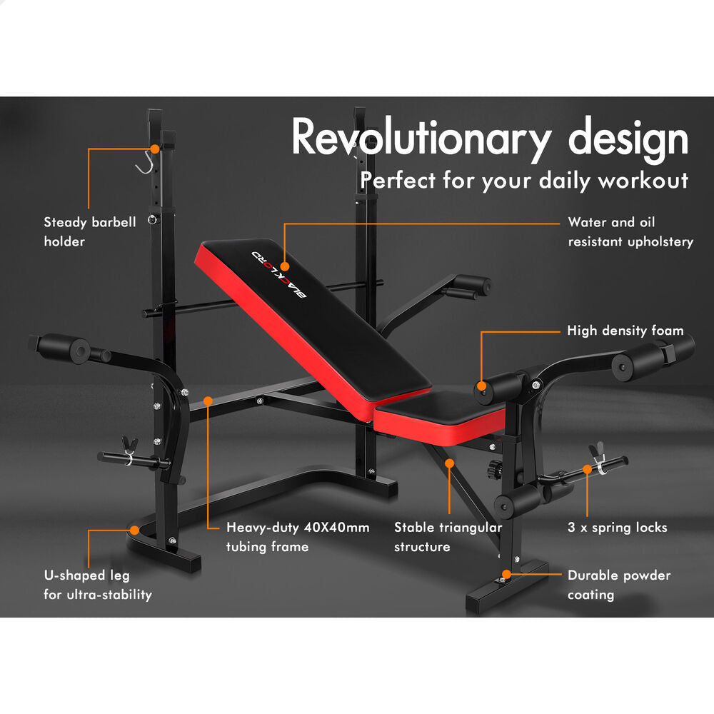 Constructed from quality steel, extra-thick foam, and breathable but sweat-proof faux leather, the bench is designed to be durable with 250kg weight capacity and offers rock-solid stability with reinforced U-shaped leg. With 80cm unparalleled bench press width, narrow is not even a thing. The gorgeous powder-coated paint job will keep it looking fresh for years to come. Best of all, the ultra-comfortable backrest can conveniently be adjusted to flat and incline positions for a variety of exercises. The dual-action leg developer is fitted with high density foam rollers for added comfort. Better still, the bench also has rubber feet to keep the metal frame from damaging flooring and to keep the bench in place.