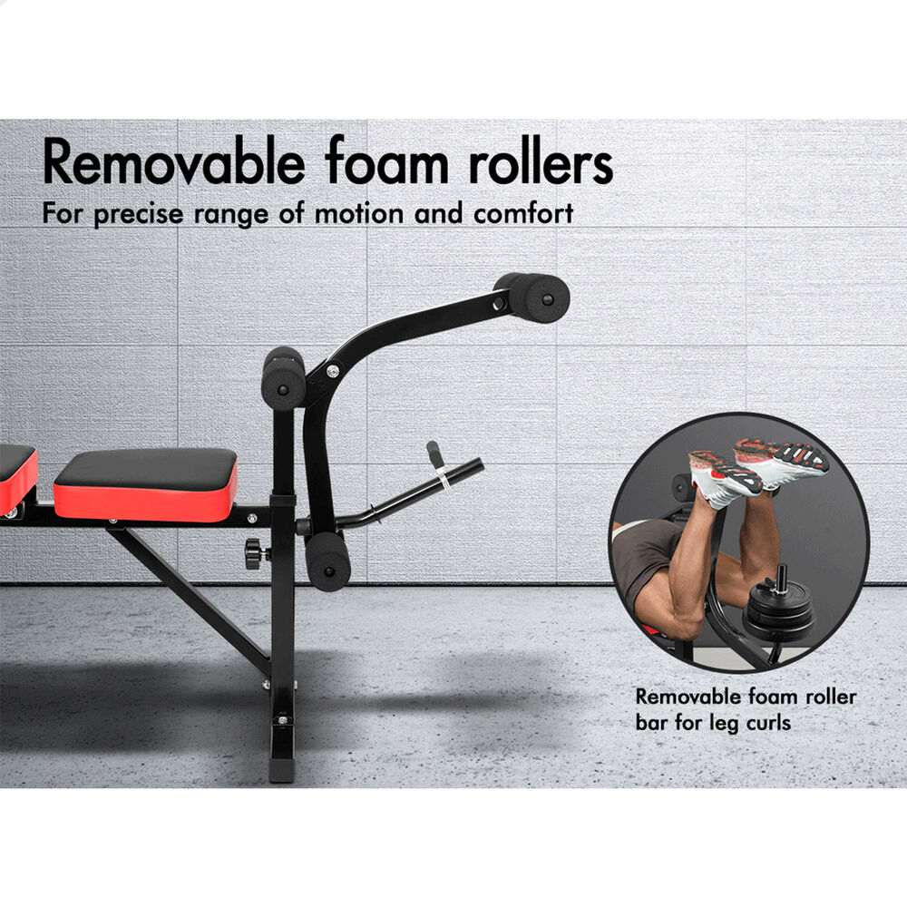 * Inbuilt dual-action leg developer with removable foam rollers - perfect for leg curls and lying leg curls