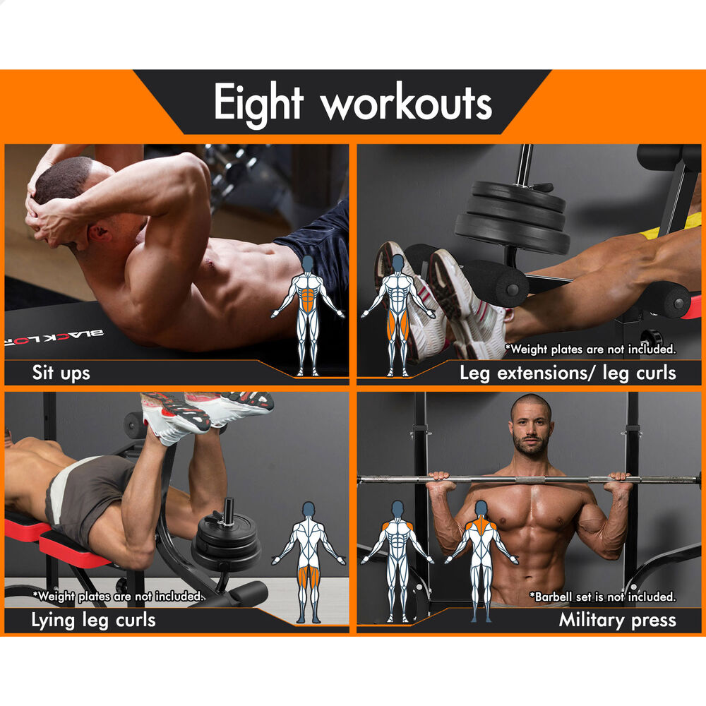 Stay healthy and in shape despite being indoors. Wait no more! This BLACK LORD 8-in-1 weight bench will definitely revolutionize your home or garage gym experience.