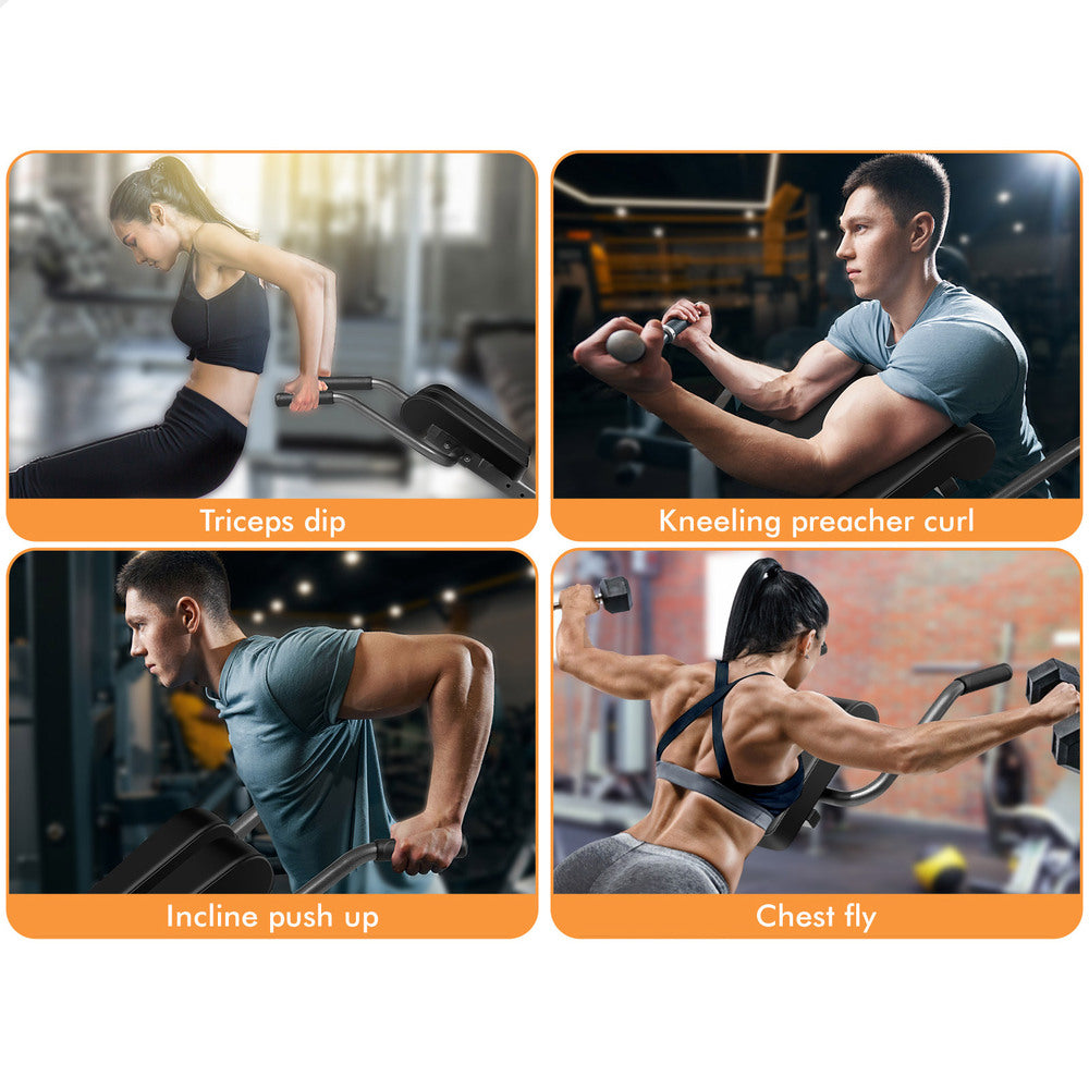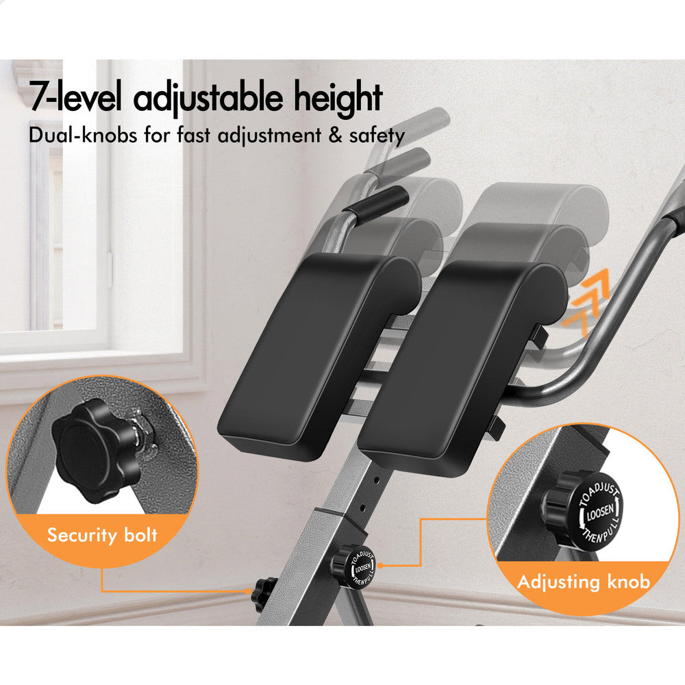 With adjustable 3-level incline and 7 hip pad height, you will love the adjustability of this Roman chair. It also features non-slip handlebars, allowing you to maintain a solid grip throughout every workout.