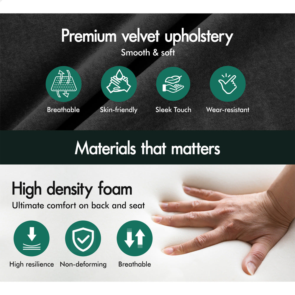 * Deluxe velvet fabric upholstery, soft and long-lasting