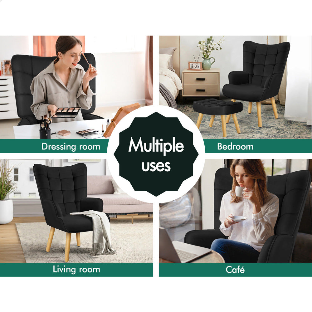 ALFORDSON Armchair Velvet Wooden Accent Chair Lounge Sofa Ottoman Couch Seat
