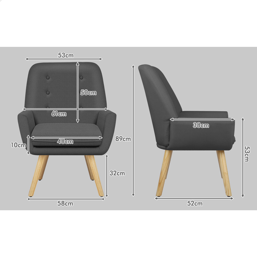 Combined with retro-inspired wood legs and linen fabric, this upholstered chair adds elegance and sophistication to the decor while enhancing the atmosphere of the room.