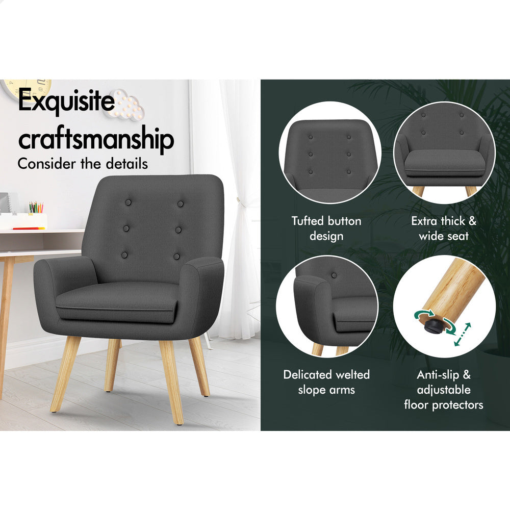 ALFORDSON Armchair Lounge Accent Chair Fabric Dark Grey