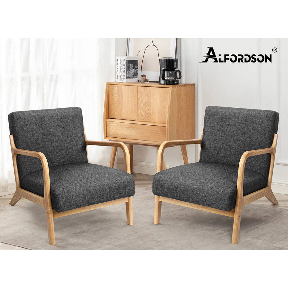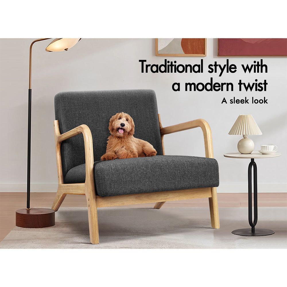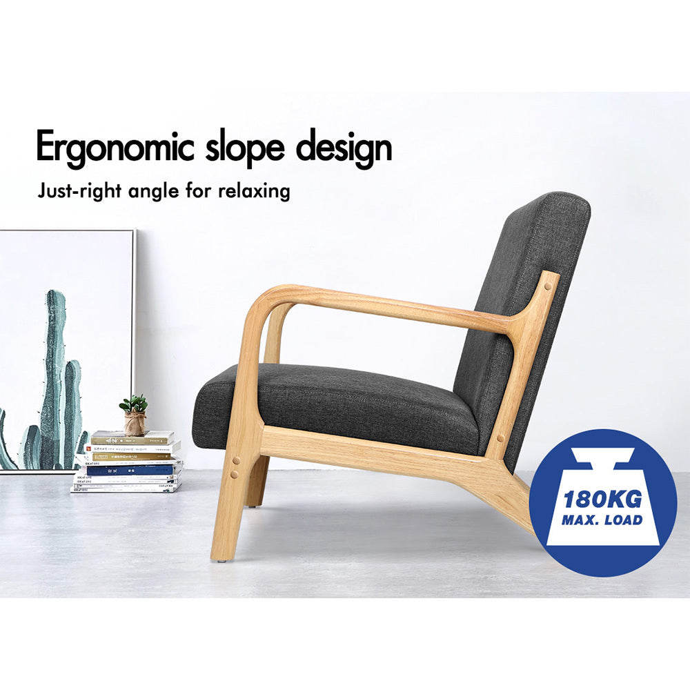 ALFORDSON Armchair Lounge Chair Accent Wood Sofa Couch Fabric Seat Grey