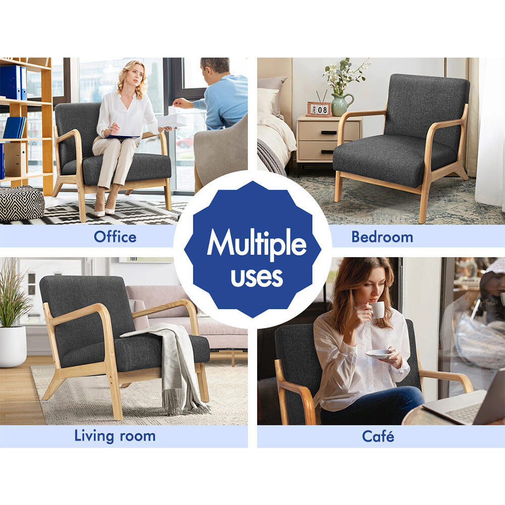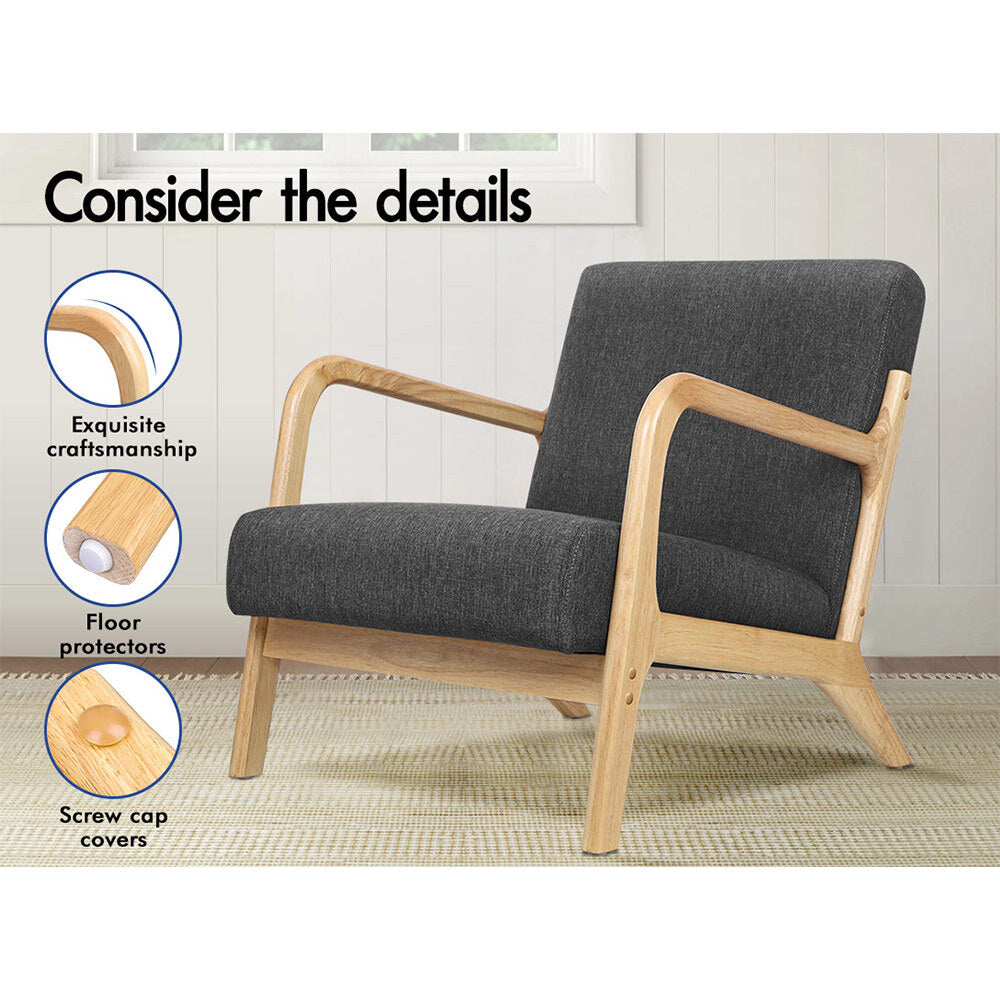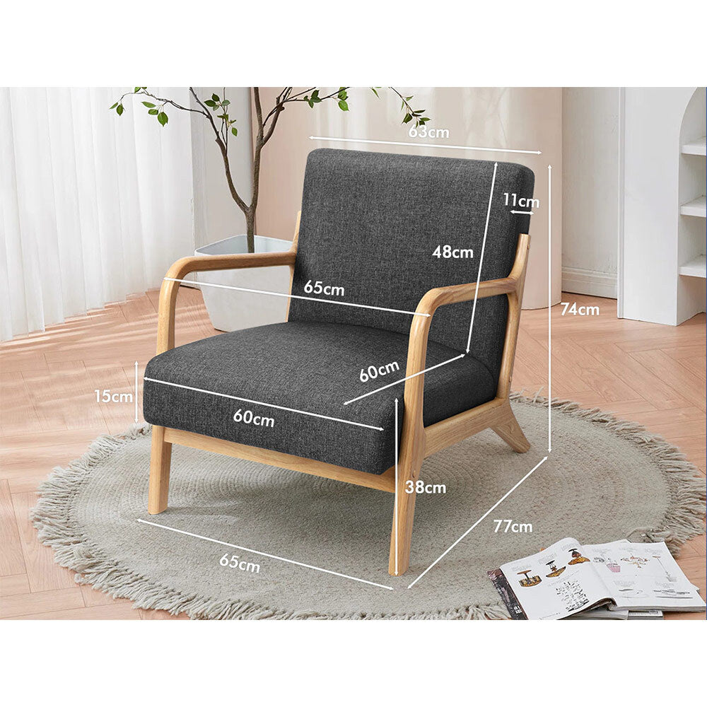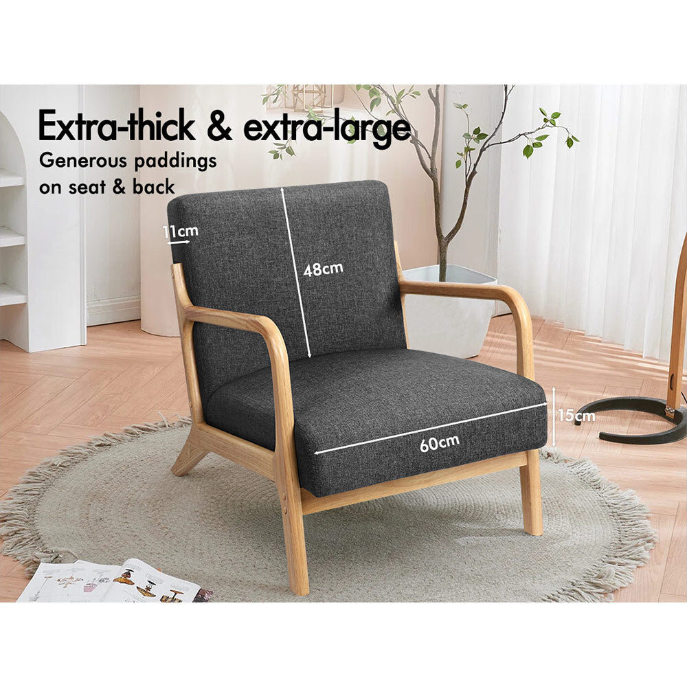 ALFORDSON Armchair Lounge Chair Accent Wood Sofa Couch Fabric Seat Grey