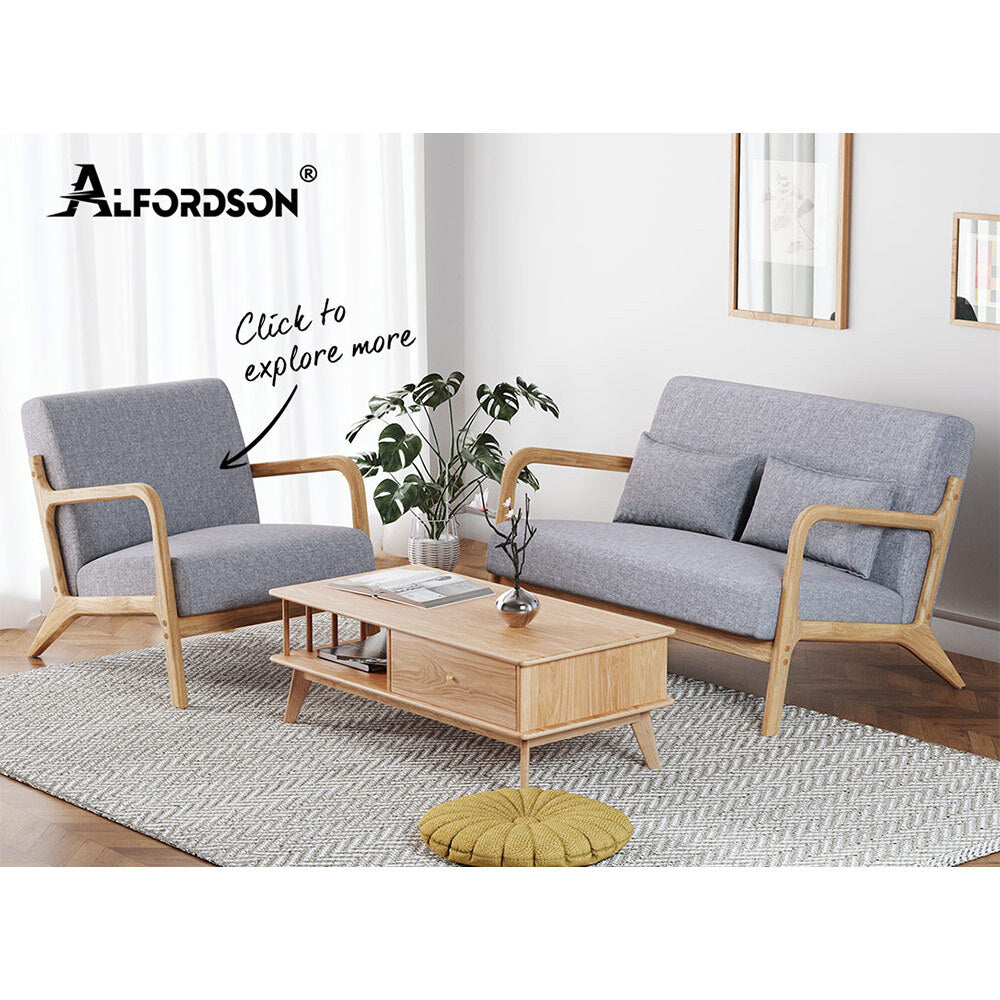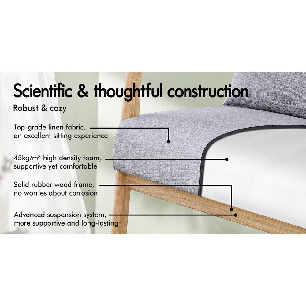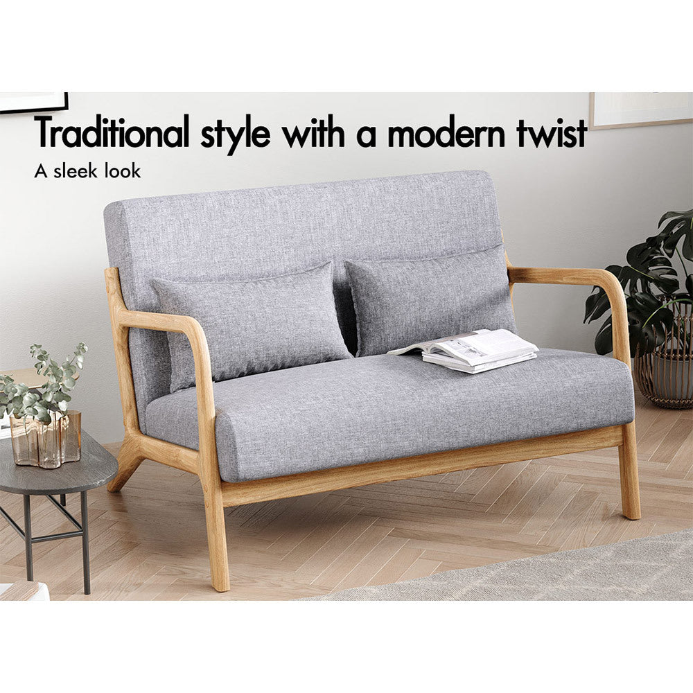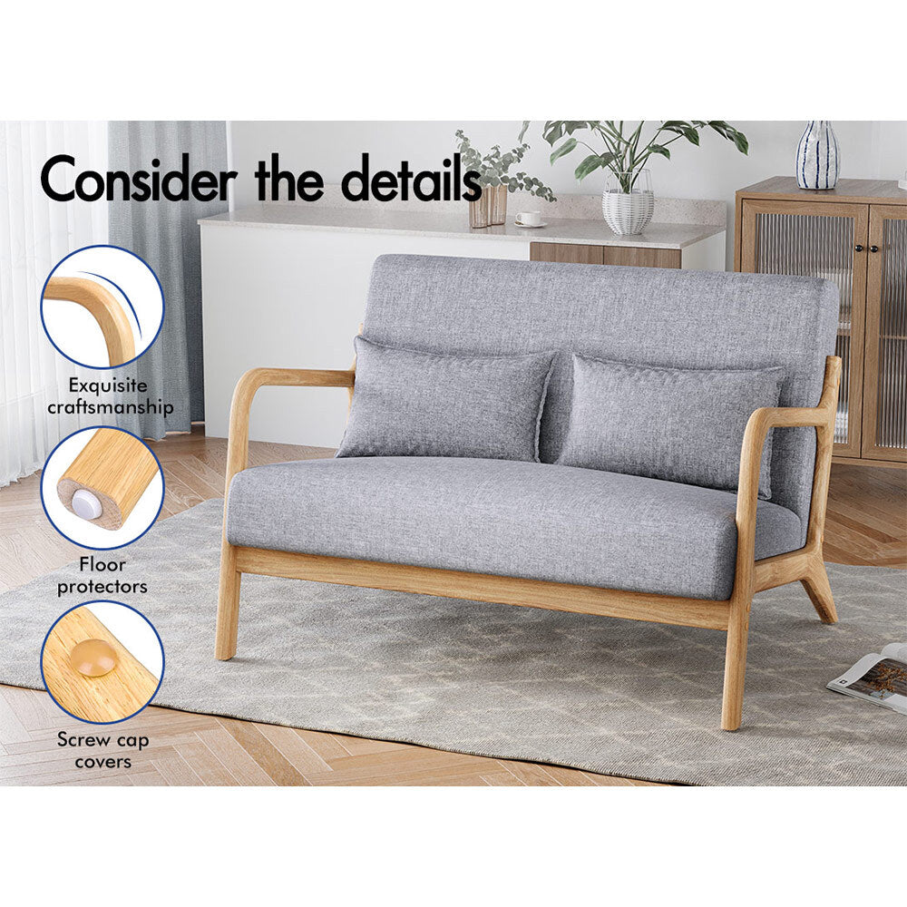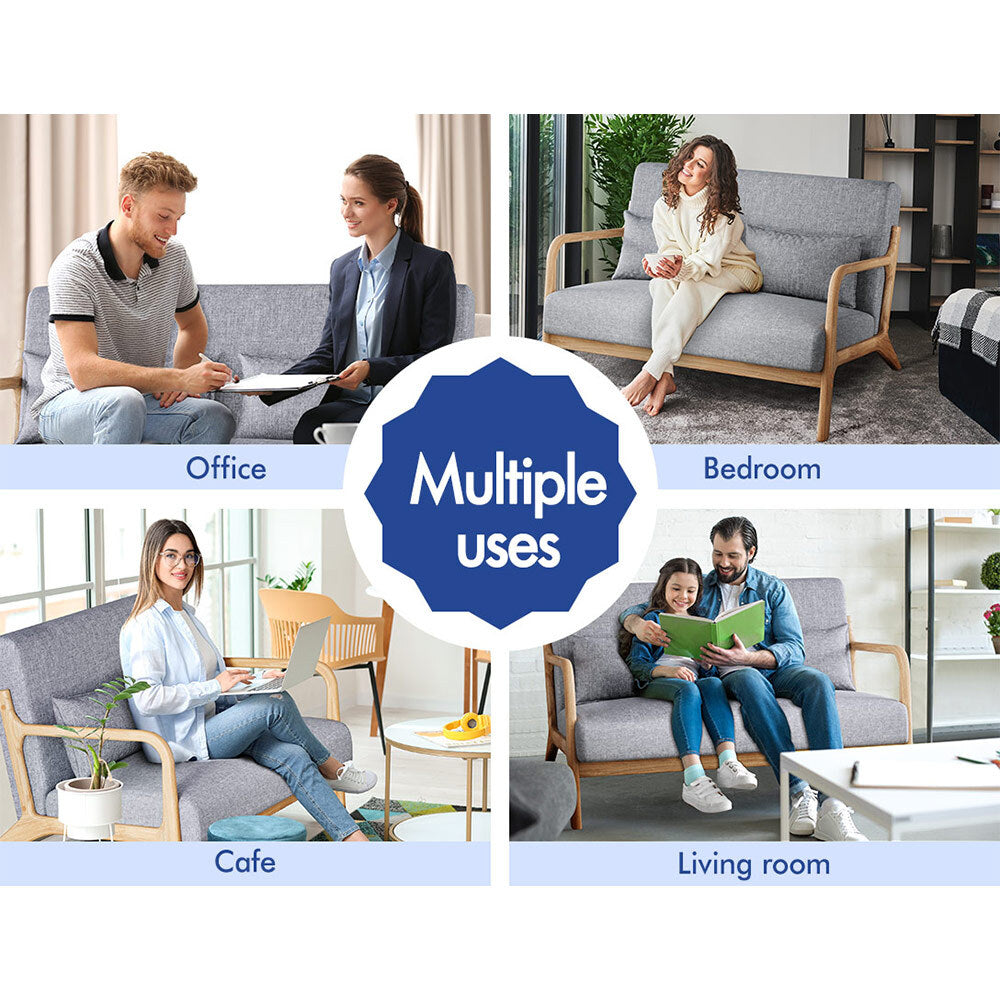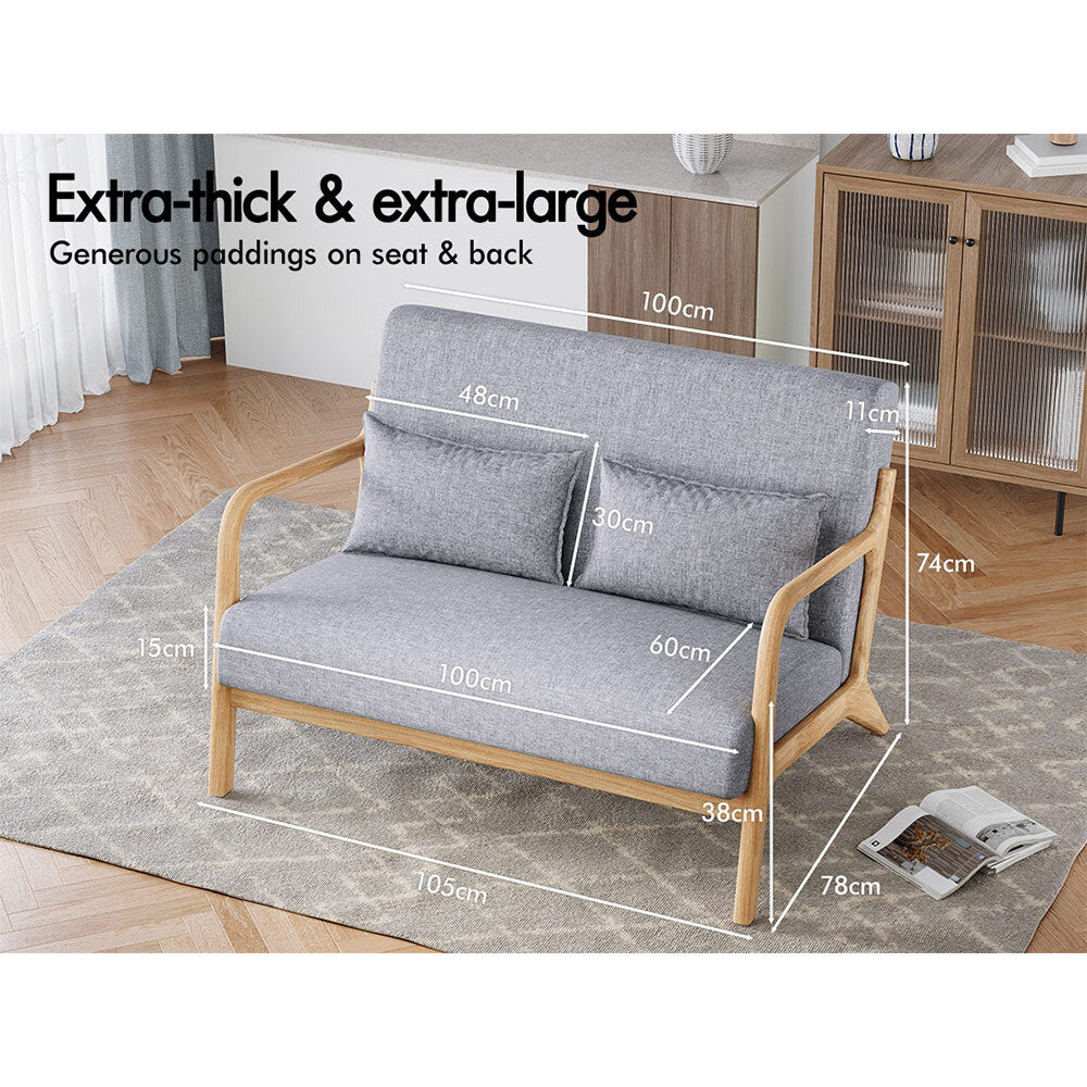 ALFORDSON Couch 2 Seater Sofa Armchair Accent Lounge Chair Fabric Seat Grey