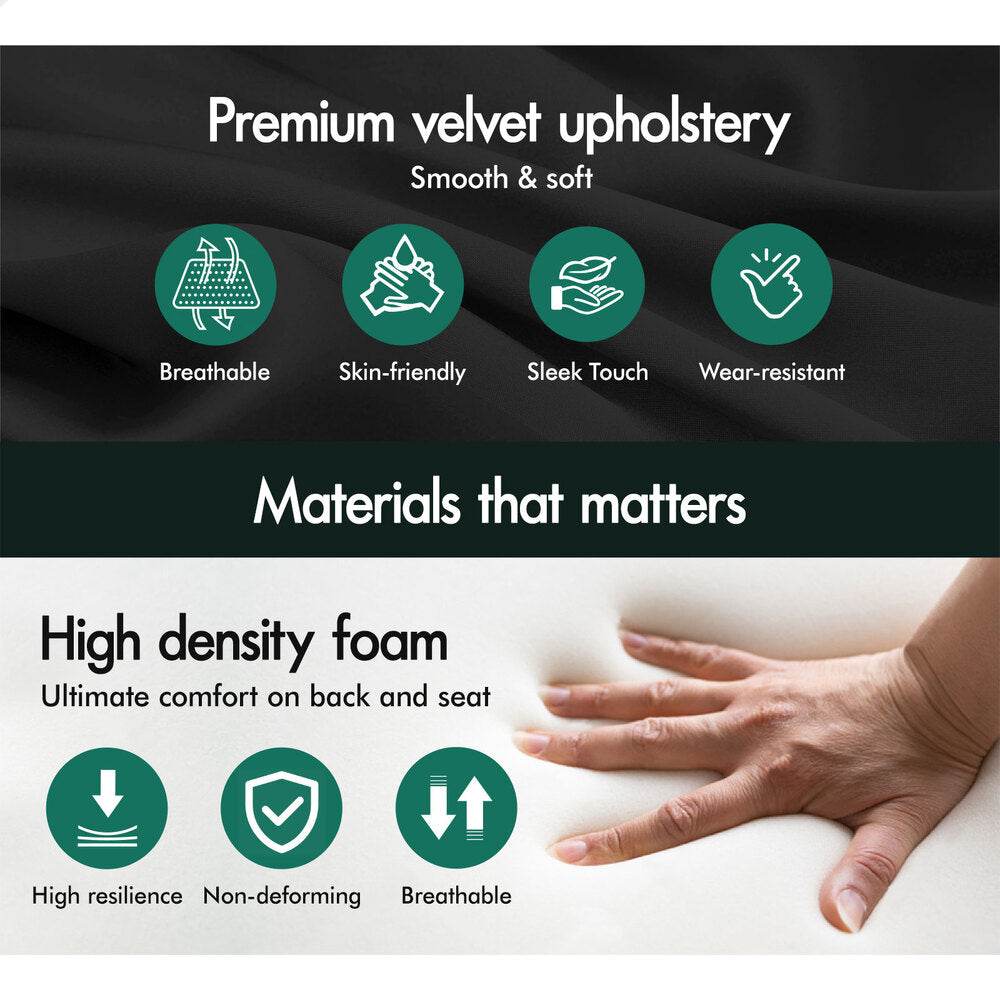 * Deluxe velvet fabric upholstery, soft and long-lasting