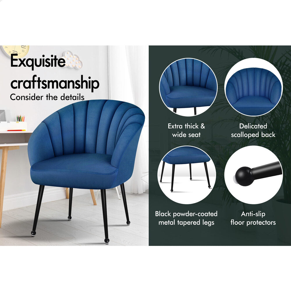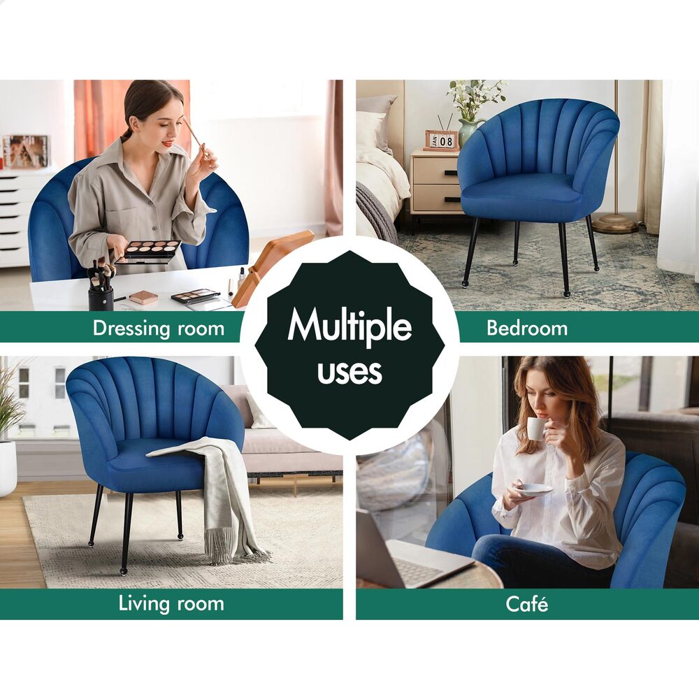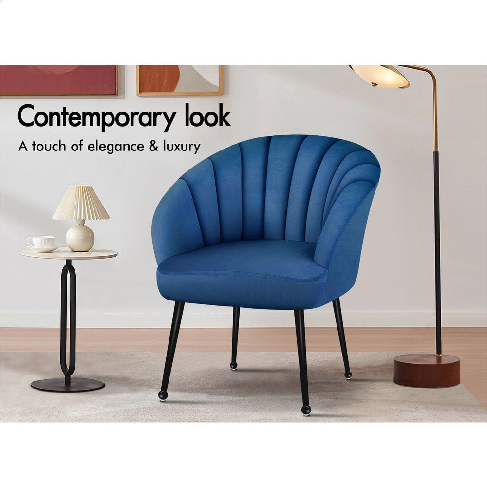 ALFORDSON Velvet Armchair Accent Chair Tub Lounge Sofa Couch Fabric Seat Blue