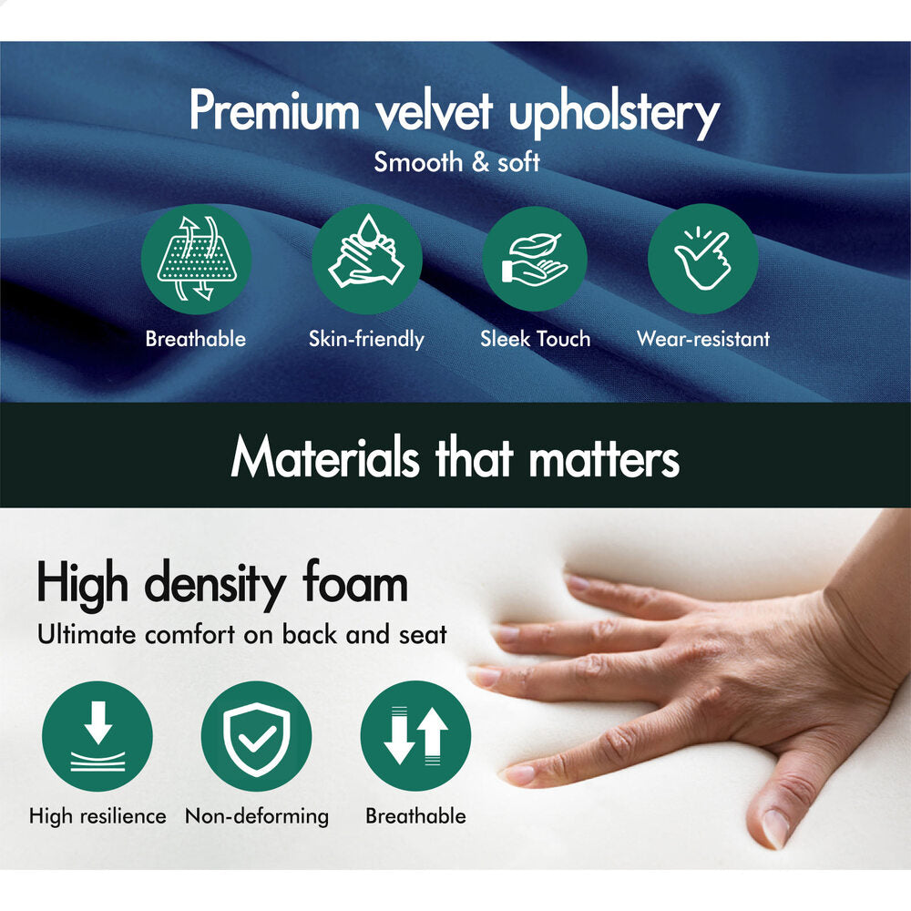 * Deluxe velvet fabric upholstery, soft and long-lasting