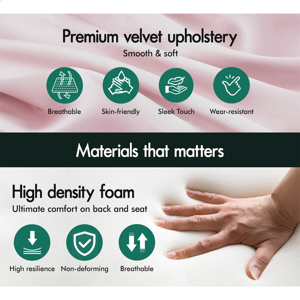 ALFORDSON Velvet Armchair Lounge Accent Chair Sofa Couch Fabric Seat Pink