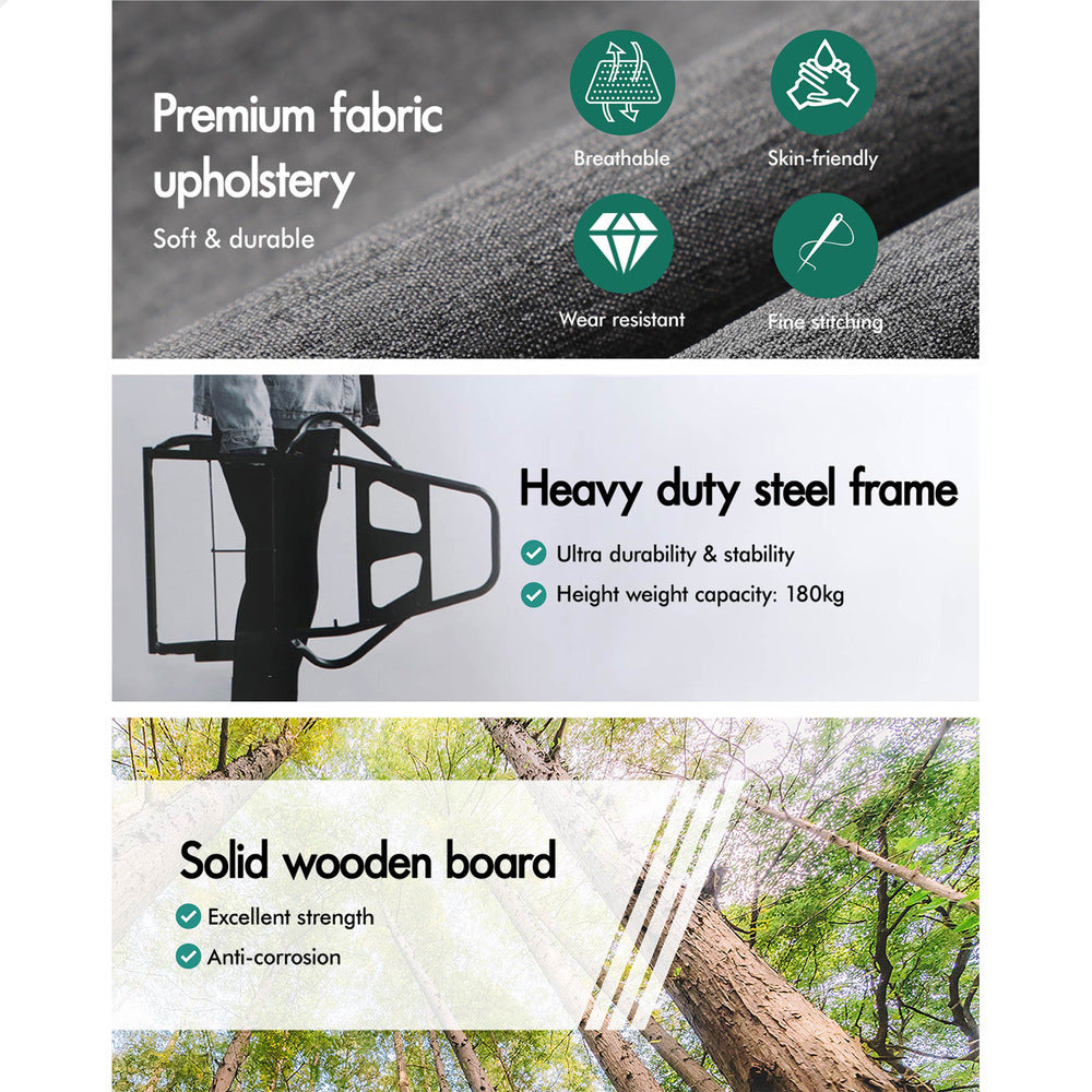* Seat material: Linen fabric, high density foam, metal frame and wooden board