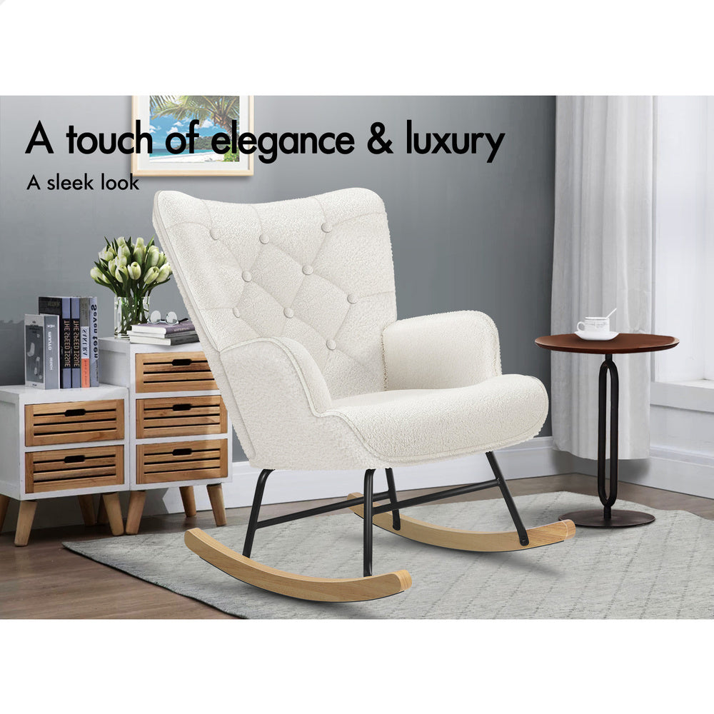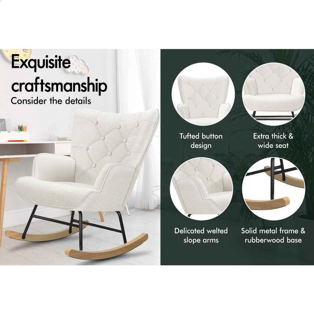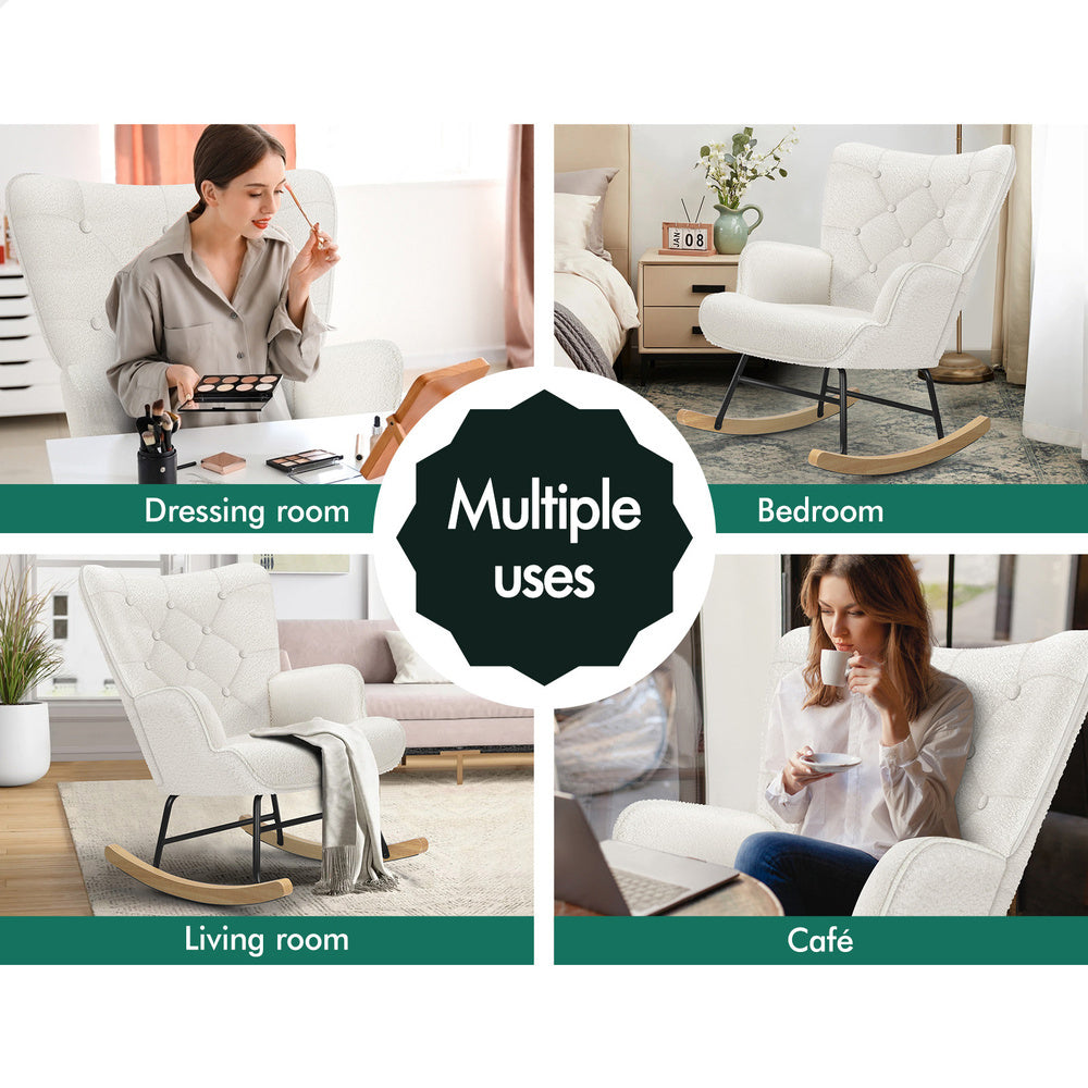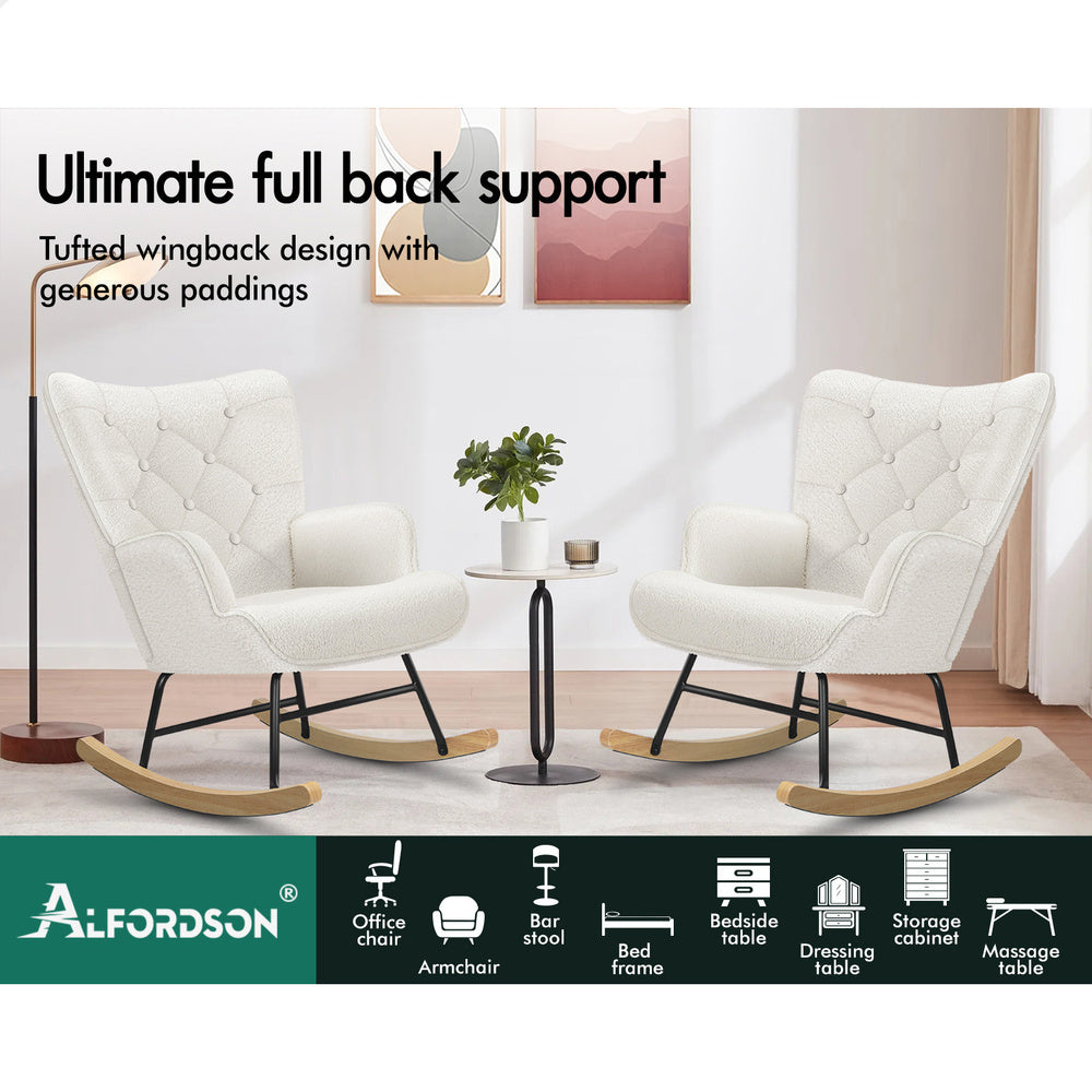 ALFORDSON Rocking Chair Armchair Lounge Accent Chair Boucle White