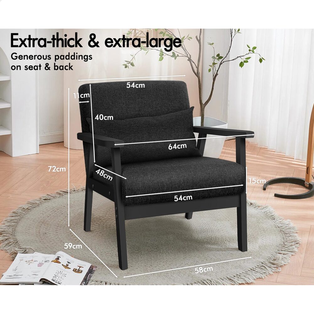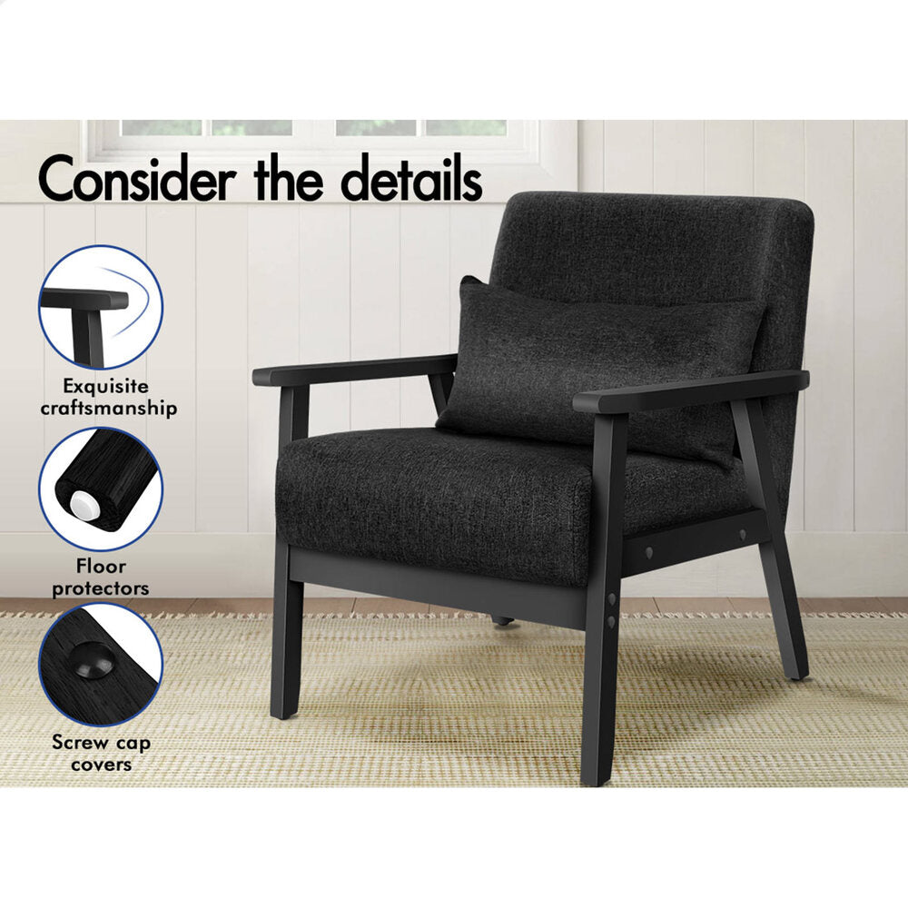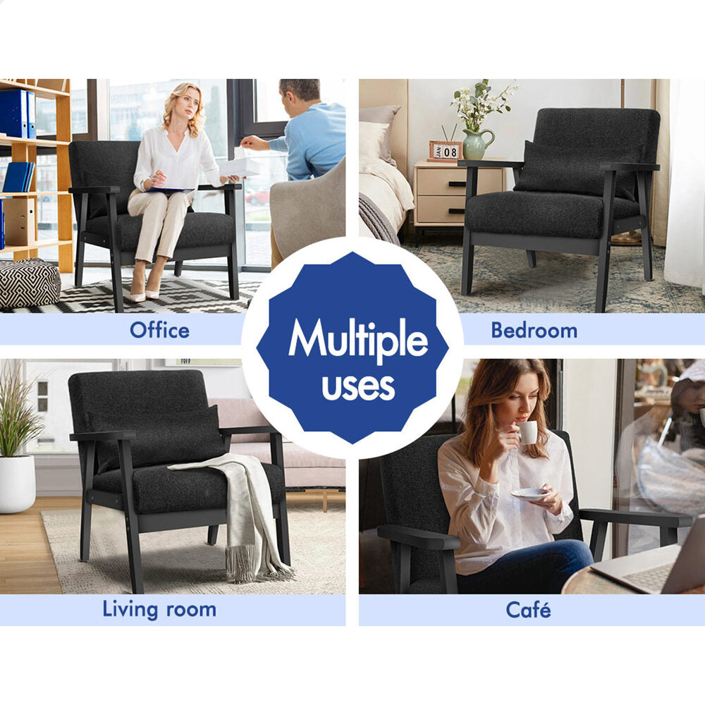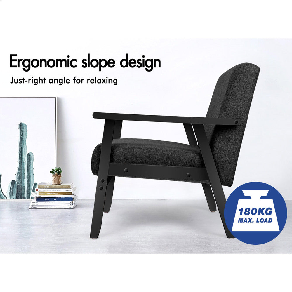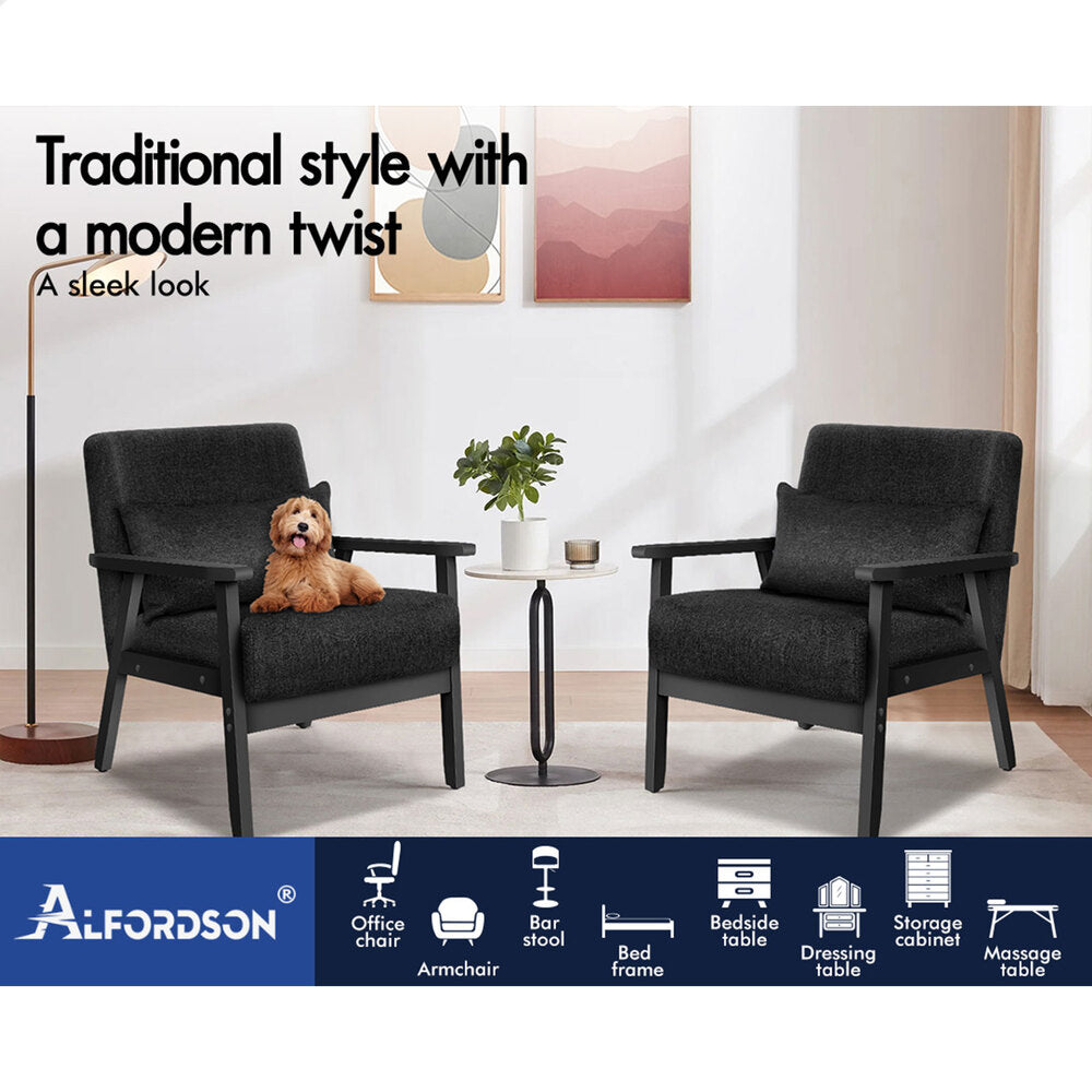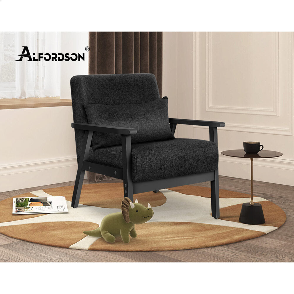 ALFORDSON Wooden Armchair Lounge Accent Chair Fabric All Black